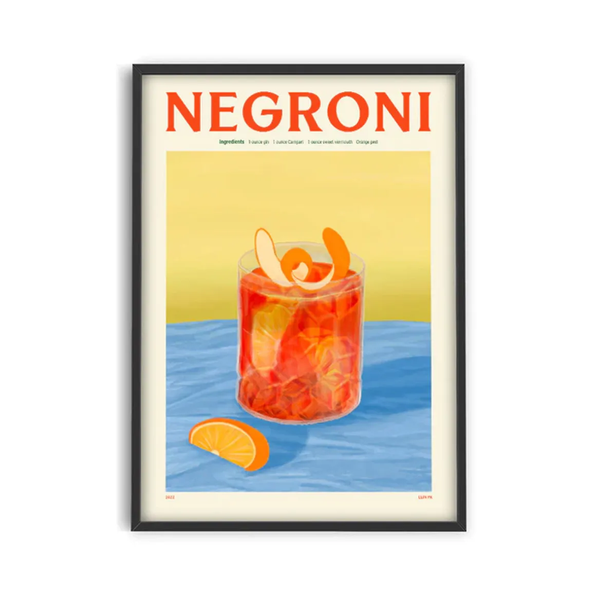 Une affiche rafraîchissante ! Au mélange d’amertume et de douceur, cette Affiche Negroni créée par l’artiste et illustratrice suédoise Elin Palmaer Karlsson en collaboration avec PSTR Studio est prête à être encadrée sur vos murs. Pour décorer un bar ou une cuisine, cette affiche est idéale comme cadeau pour les amateurs de cocktails. nnLa marque PSTR Studio, basée au Pays-Bas, propose une sélection unique de posters et d’impressions d’expositions artistiques de haute qualité. Disponible en plusieurs formats. Vendue sans cadre.