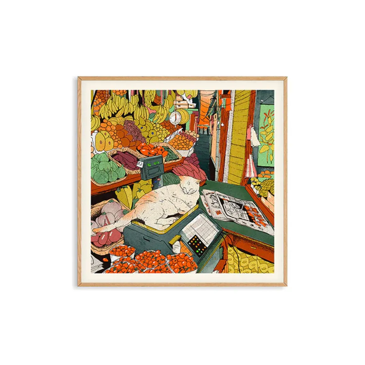 Forte de couleurs vibrantes, cette affiche Bodega Cat illustrée par Enikő Eged nous plonge dans une supérette japonaise. Prête à être encadrée, elle complètera parfaitement votre décoration murale.