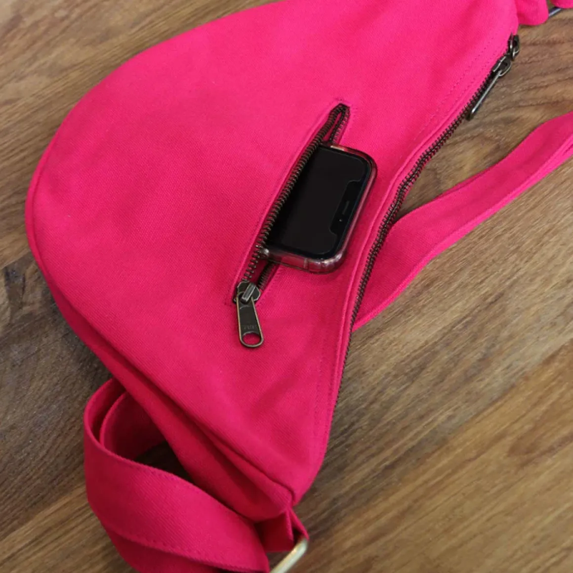 Le sac Andrea, en demi-lune, se situe entre le sac banane et la besace. Imaginé par Hindbag, il est très pratique et dispose d’une ouverture à double zip sur le dessus et d’une poche zippée à l’arrière. Son design polyvalent s’adapte à toutes les envies. Portez-le en bandoulière courte ou longue, devant, derrière, ou à l’épaule. Fabriquée coton bio couleur rose fuschia, elle est également respectueuse de l’environnement, pour une mode éthique et tendance.