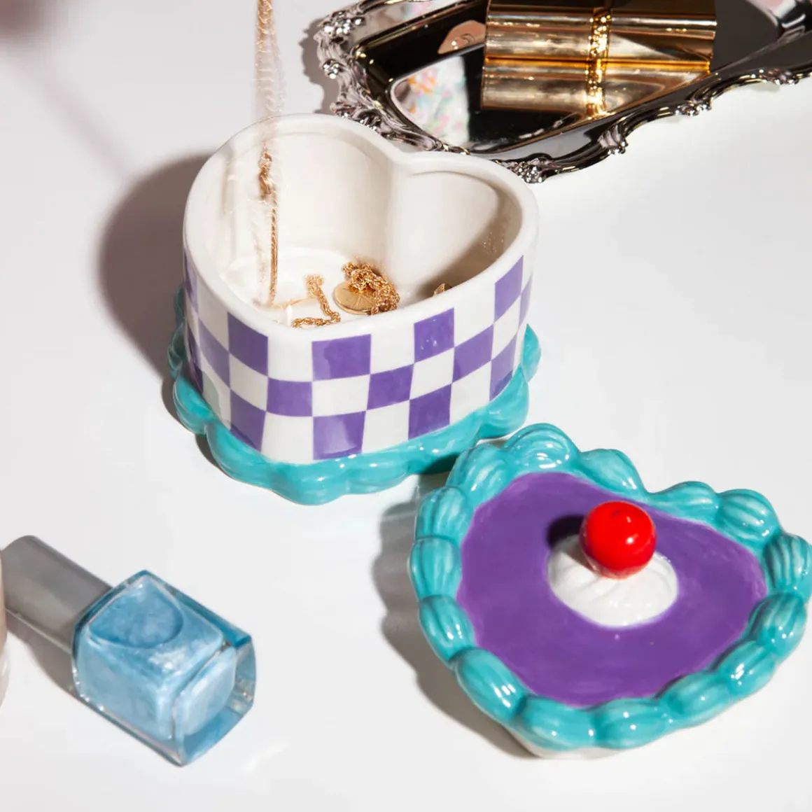 Imaginée par DOIY, cette boîte de rangement Sweetie en forme de gâteau se distingue par son design régressif et amusant à souhait. Disposée sur votre table basse comme sur votre console, elle donne à votre intérieur une ambiance rococo digne de Marie-Antoinette mais aussi contemporaine grâce à son jeu de damier et ses inspirations layer cake !