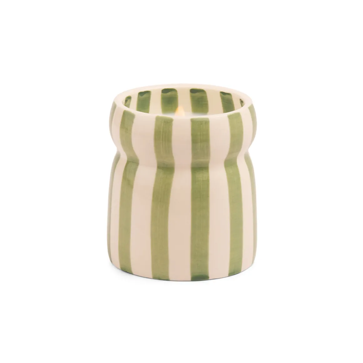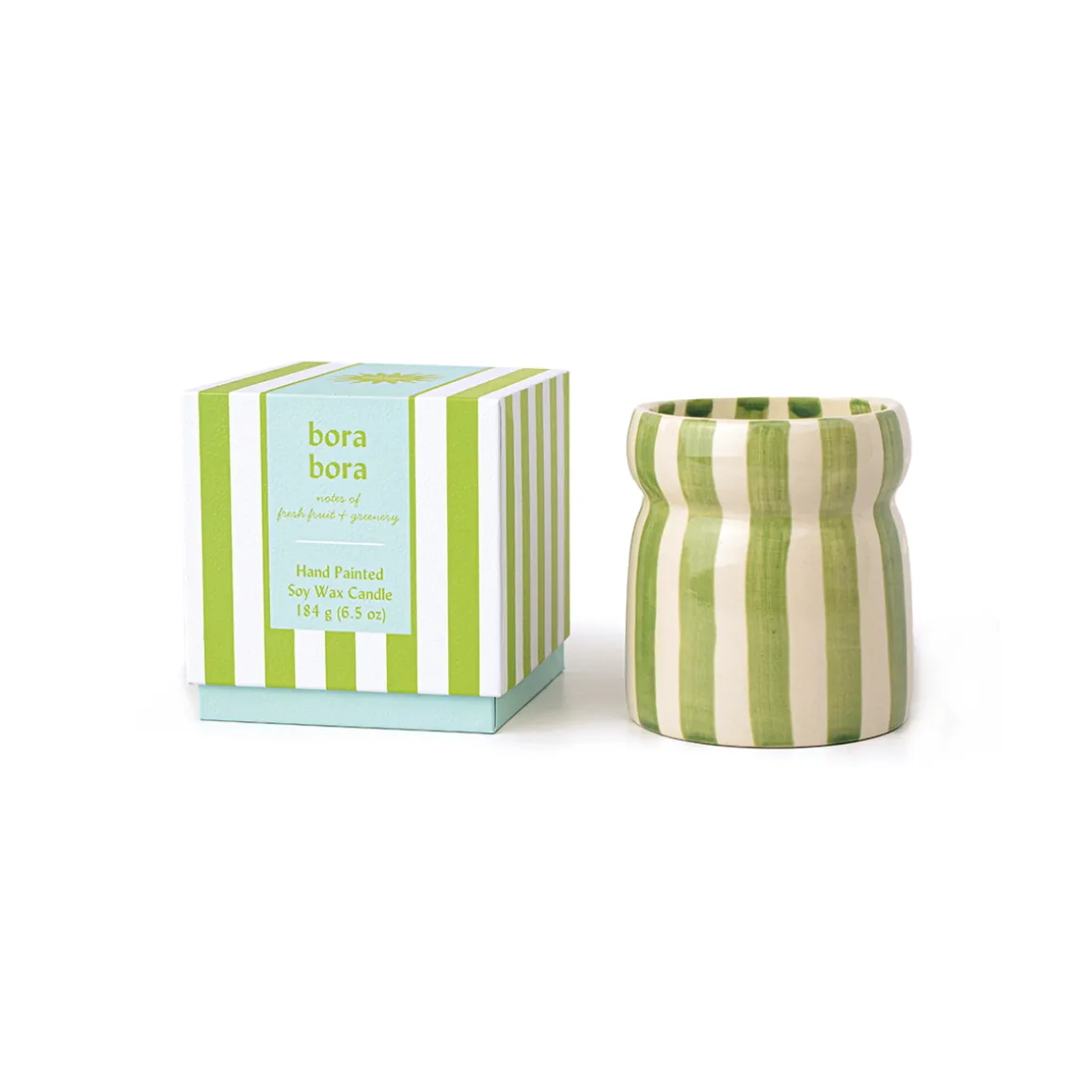 Découvrez la Bougie Cabana Bora Bora avec ses rayures élégantes. Elle apporte une ambiance chaleureuse et chic à toute pièce. Allumez-la pour une soirée relaxante ou en cadeau pour un ami. Niveau d’éclat à souhait (oui, on l’a dit).