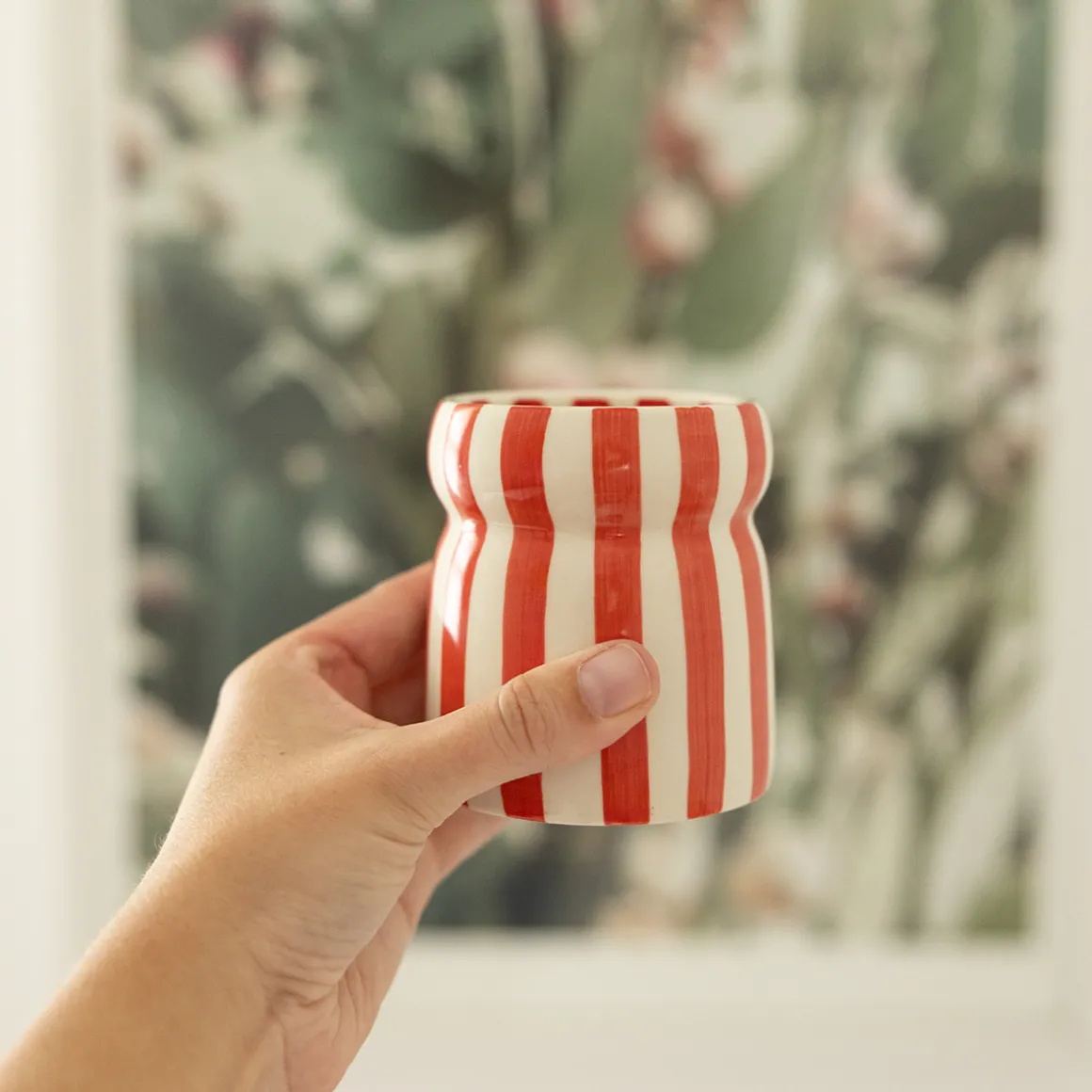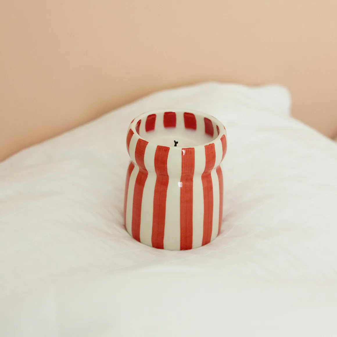 Découvrez la Bougie Cabana Hibiscus Bay avec ses rayures élégantes. Elle apporte une ambiance chaleureuse et chic à toute pièce. Allumez-la pour une soirée relaxante ou en cadeau pour un ami. Niveau d’éclat à souhait (oui, on l’a dit).