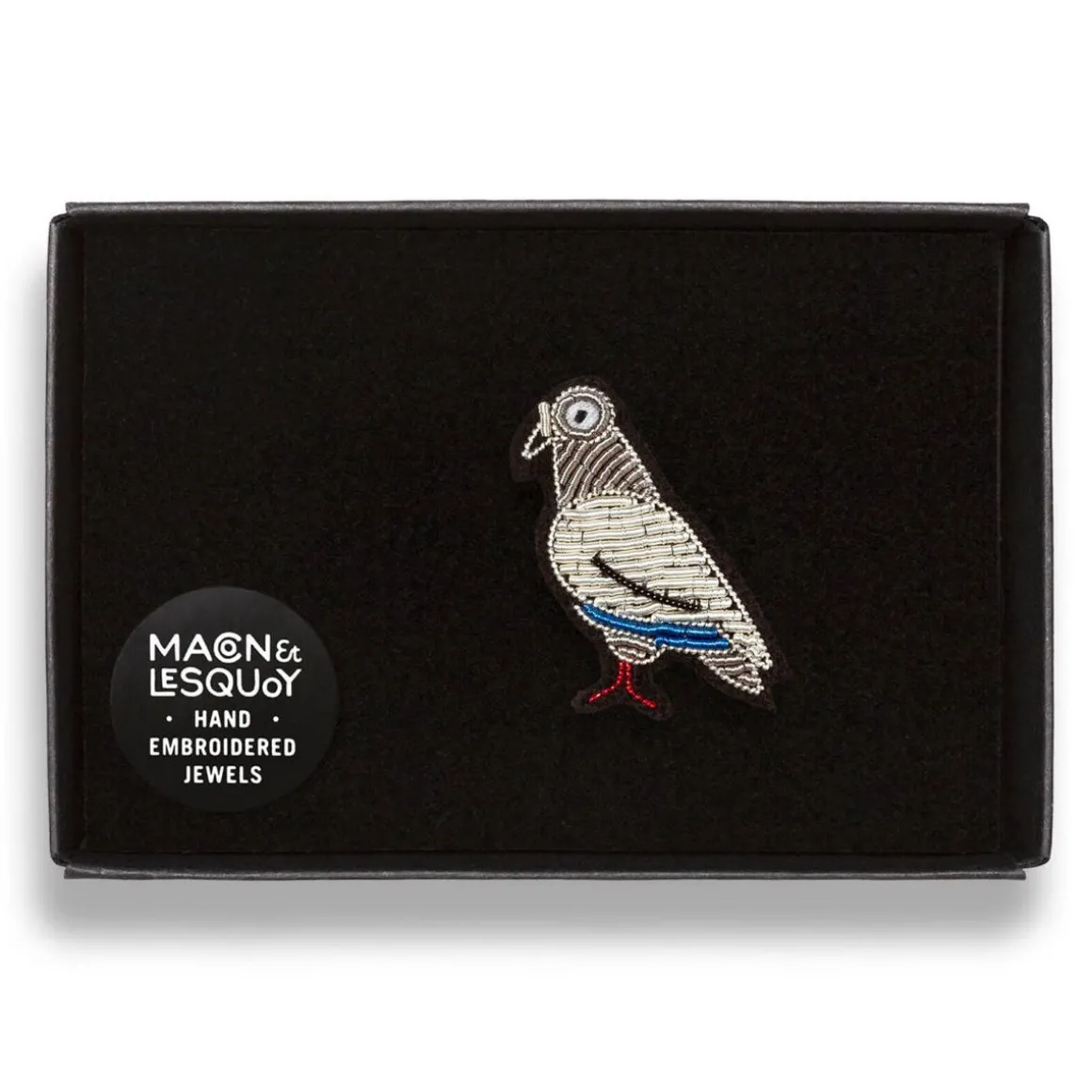 Découvrez la Broche Pigeon, un accessoire irrésistiblement décalé, dessiné et brodé à la main avec soin. Cette broche saura rehausser vos tenues avec une touche d’humour et de singularité.