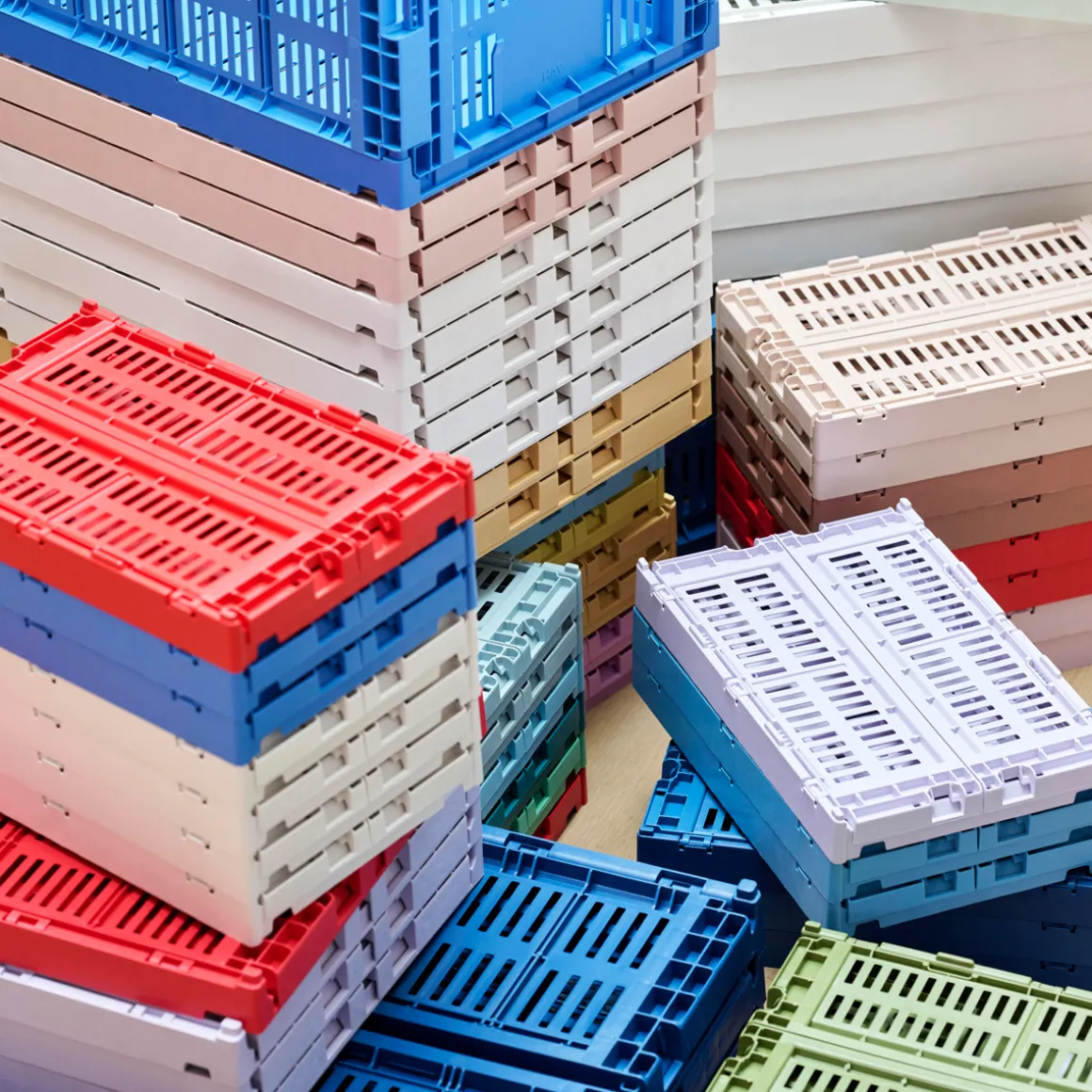 Pliable et empilable, les caisses s’utilisent pour ranger aussi bien des fruits, des légumes que de la papeterie ou des jouets ! Mélangez les tailles et les couleurs et empilez différentes caisses Crate pour un rangement à l’esprit totalement décalé ! Disponible en plusieurs modèles.