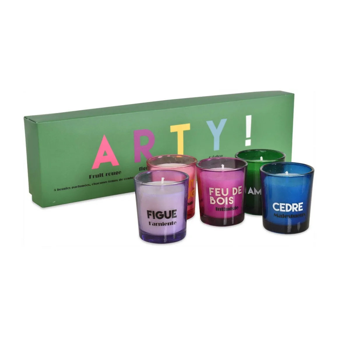 Découvrez un univers de senteurs délicates et enveloppantes avec notre Coffret de 5 Bougies Arty. Parfait pour les amateurs de bougies, ce coffret offre cinq mini pots aux parfums soigneusement sélectionnés pour éveiller vos sens et transformer l’ambiance de votre intérieur.