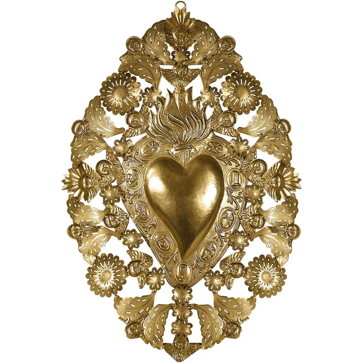 Un coeur sacré plein d’amour pour orner vos murs de belles intentions ! Cette collections d’exvotos rayonnera à vos murs. Faite de fer blanc embossé, patiné à la main, ce qui lui donne cette jolie couleur et son coté ancien, cette décoration murale est l’oeuvre d’un artisan, ainsi chaque coeur est unique par le grain, la patine. Cet objet de décoration mural et symbolique, à l’origine suspendu dans une église, un lieu vénéré, à la suite d’un vœu ou en remerciement d’une grâce obtenue, viendra s’accrocher joyeusement dans notre vie. Disponible en plusieurs modèles.