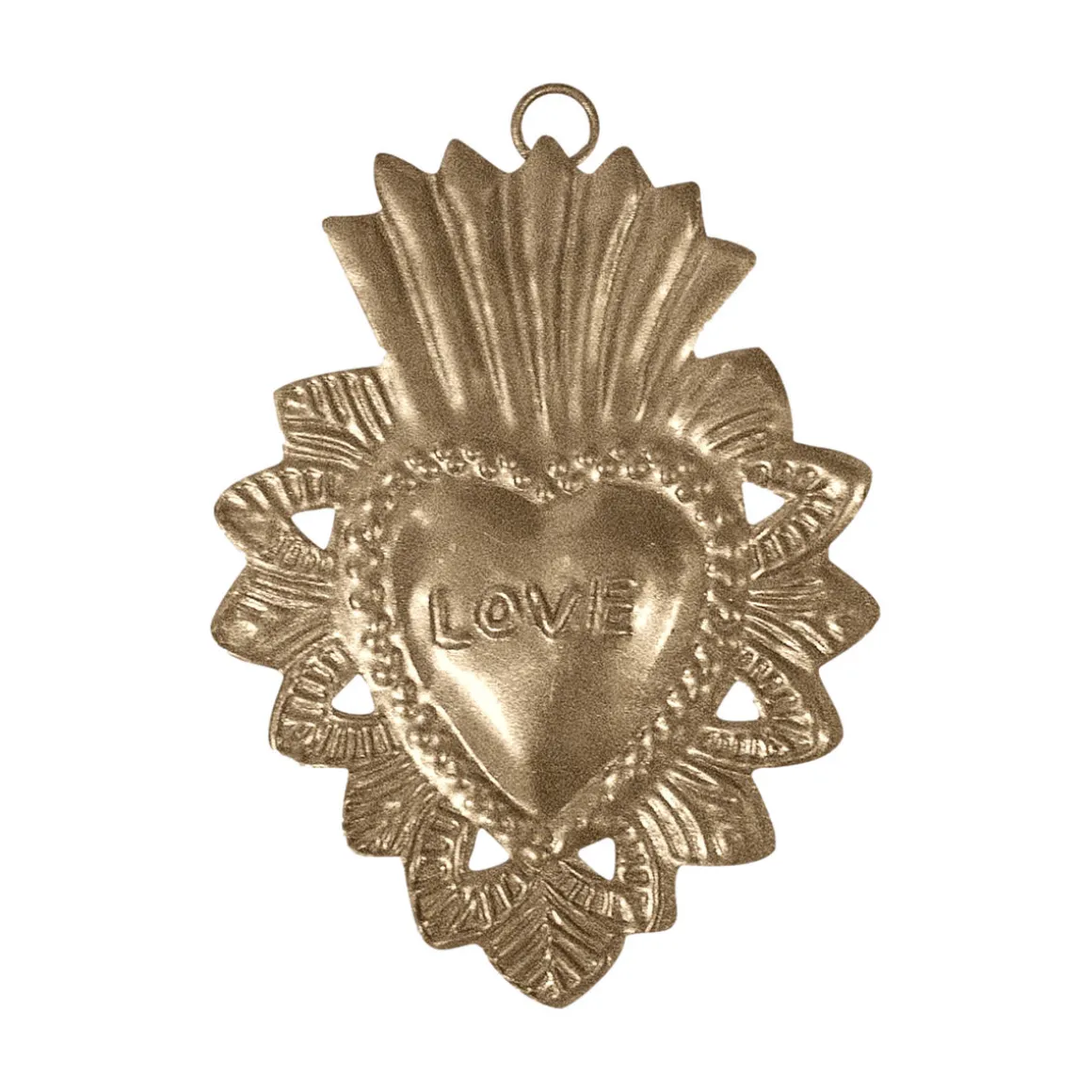 Coeur Maya Love argent de Boncoeurs. Un coeur sacré plein d’amour pour orner vos murs de belles intentions ! Cette collection d’exvotos rayonnera à vos murs. Faite de fer blanc embossé, patiné à la main, ce qui lui donne cette jolie couleur et son coté ancien, cette décoration murale est l’oeuvre d’un artisan, ainsi chaque coeur est unique par le grain, la patine. Cet objet de décoration mural et symbolique, à l’origine suspendu dans une église, un lieu vénéré, à la suite d’un vœu ou en remerciement d’une grâce obtenue, viendra s’accrocher joyeusement dans notre vie. De fabrication artisanale, les exovots peuvent être sujets à de légères variations de formes et coloris des patines.