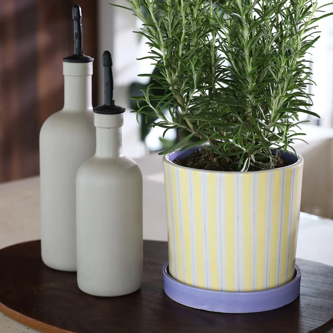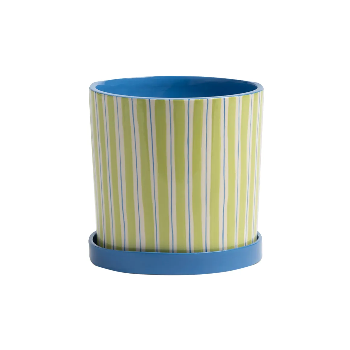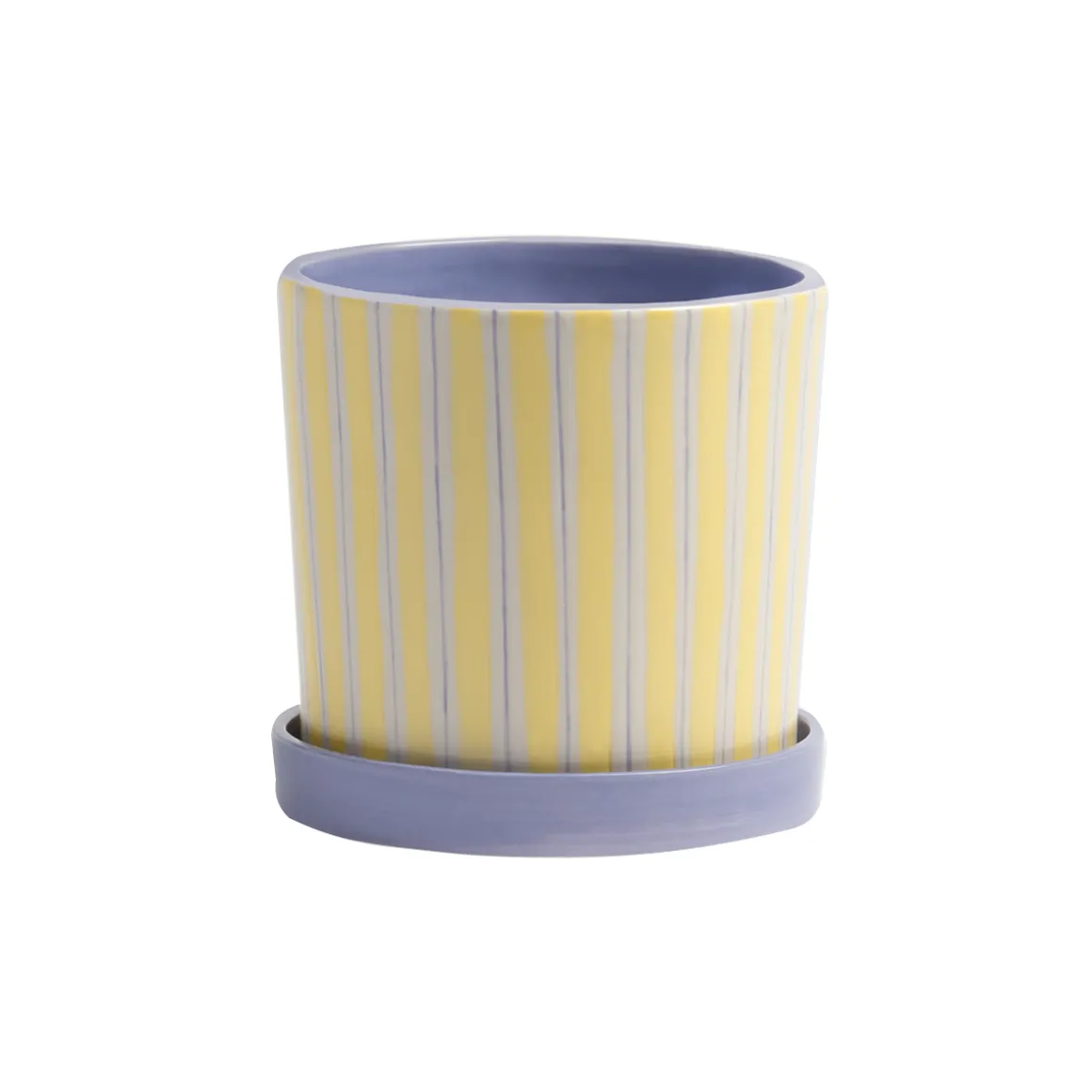 Découvrez la jardinière Ray imaginée par u0026amp;Klevering ! Avec son motif rayé peint à la main et sa forme irrégulière, il se distingue par son style unique. Idéal pour sublimer vos plantes, c’est aussi un incontournable pour une décoration élégante et originale. Misez sur ce design artisanal pour mettre en valeur vos espaces.