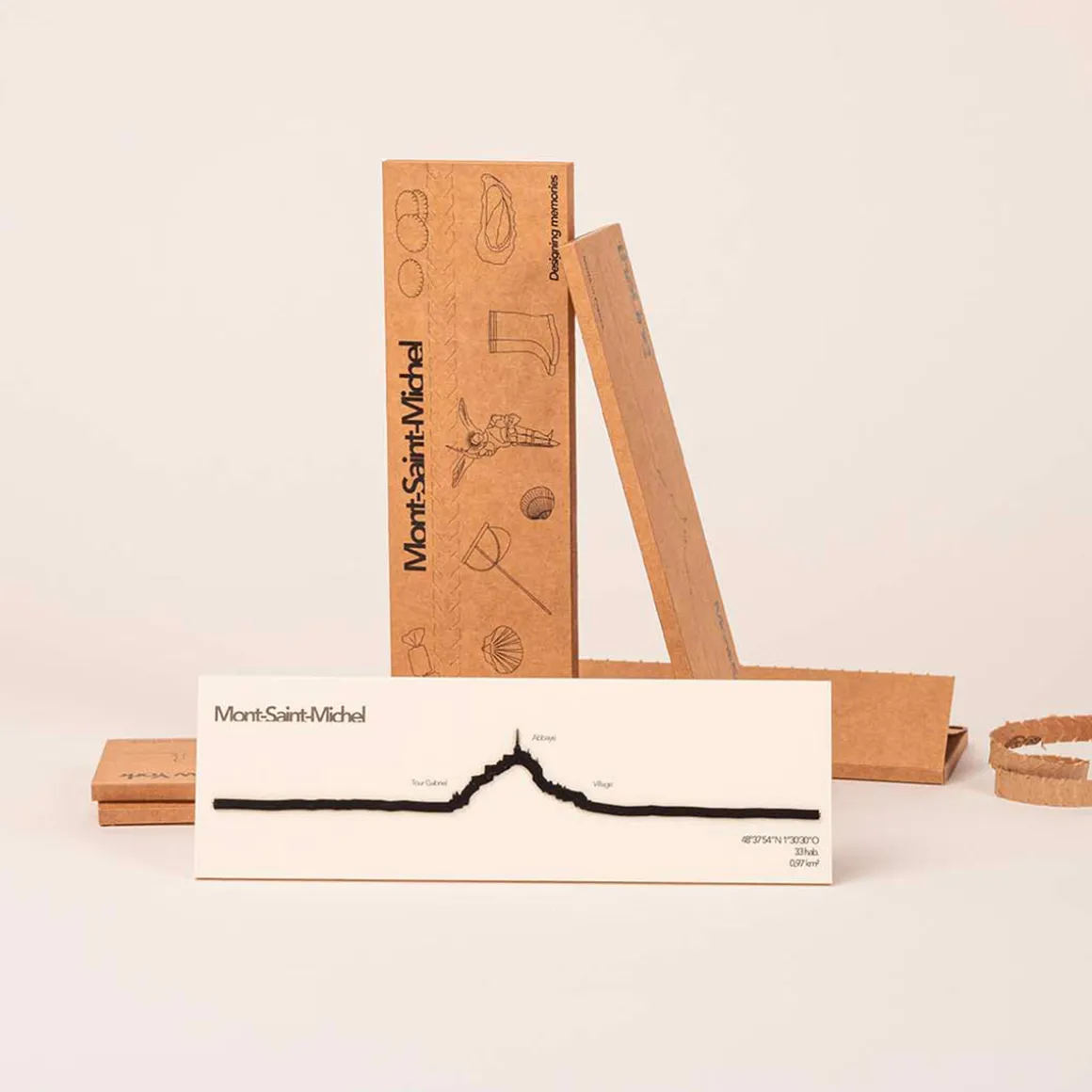Tombez sous le charme de la mini silhouette du Mont Saint Michel découpée en acier et fabriquée en France de manière responsable qui utilise zéro plastique. Découvrez la skyline du Mont Saint Michel avec la tour Gabriel et l’abbaye du Mont Saint Michel vus depuis le sud du Mont. Vous pourrez aussi bien la poser sur votre table grâce à une cale blanche avec une cravate qui permet de la positionner, l’accrocher à votre mur avec les 2 petits adhésifs fournis pour fixer la ligne sur n’importe quelle surface ou encore l’aimanter grâce aux 2 petits aimants fournis dans la petite enveloppe pour utiliser la ligne sous forme de magnet.