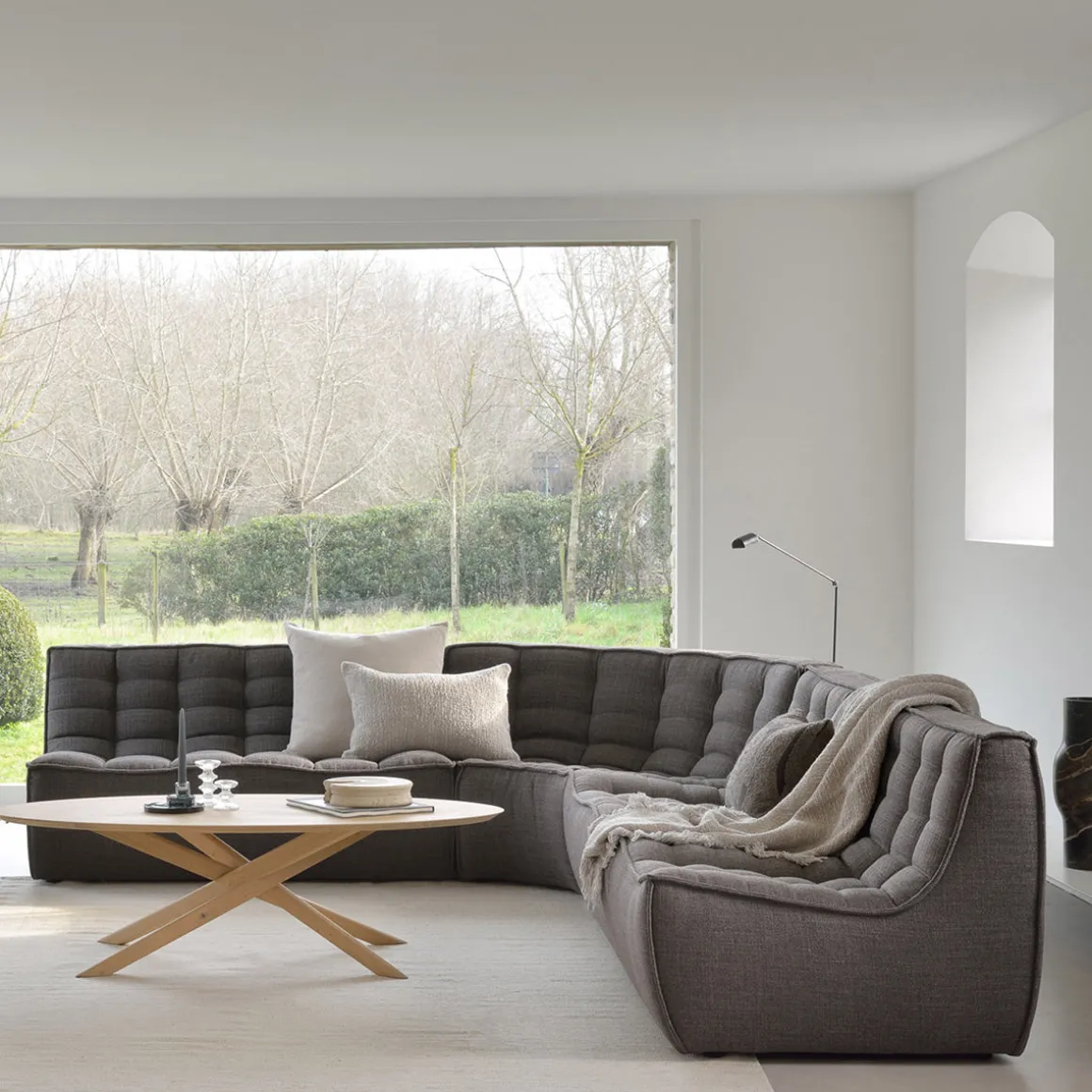 Conçue par Jacques Deneef, la collection de canapés N701 d’Ethnicraft invite à la détente et à la relaxation. Résolument confortable, il se distingue par un design décontracté assumé sans pieds apparents. Il mise sur une silhouette intemporelle, conviviale et chaleureuse, ce qui en fait une pièce idéale pour être le centre de la décoration du salon. Robustesse, design et bien-être, l’alliance parfaite pour votre intérieur ! En combinant les différentes pièces et tailles, vous avez des possibilités illimitées lorsqu’il s’agit de créer votre propre cadre unique. Plusieurs couleurs et matériaux disponibles.