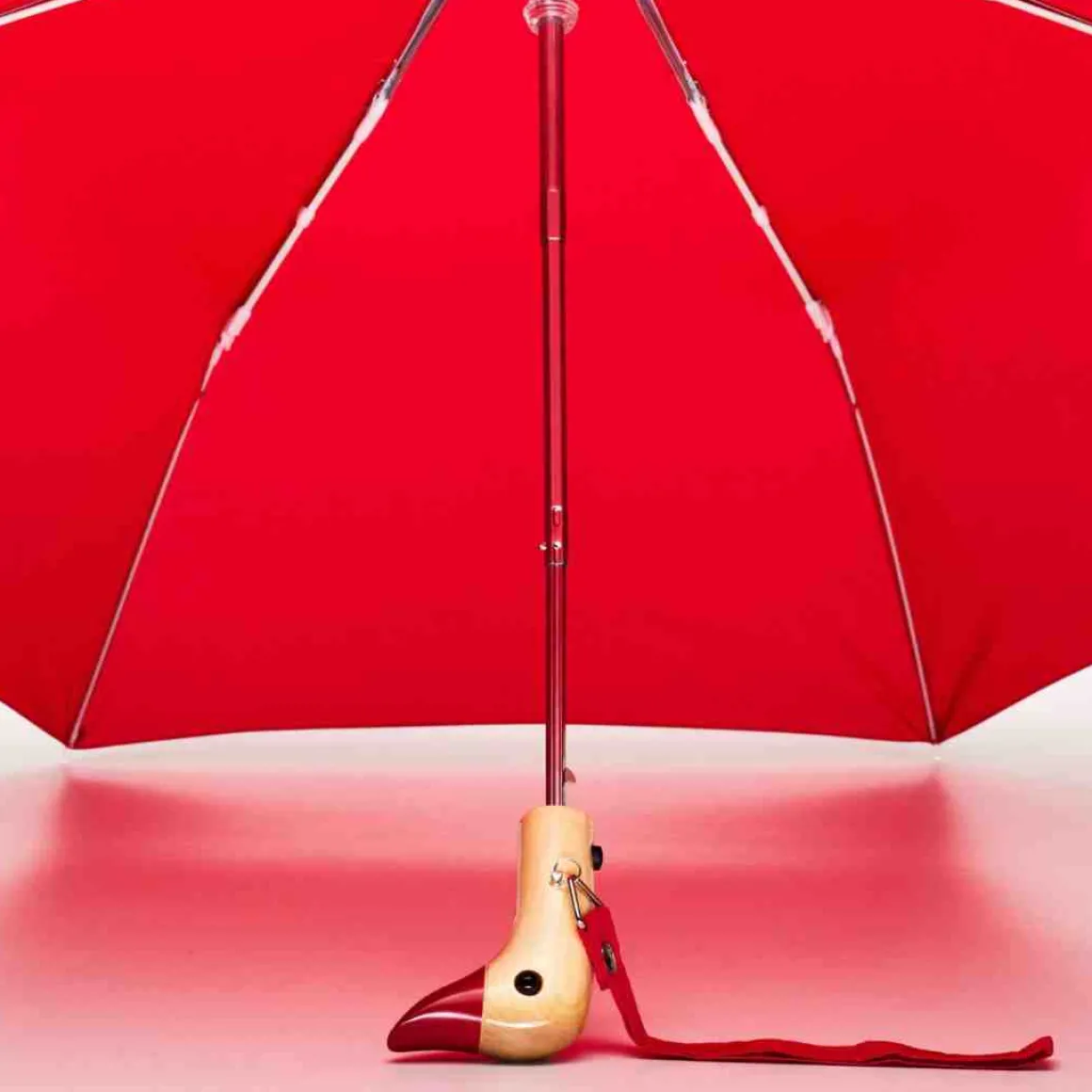 Abritez-vous sous ce Parapluie à manche Tête de Canard Rouge d’Original Duckhead aussi original que durable ! Les parapluies sont fabriqués à la main à partir de bouteilles en plastique recyclées et de bois de bouleau massif pour le manche.