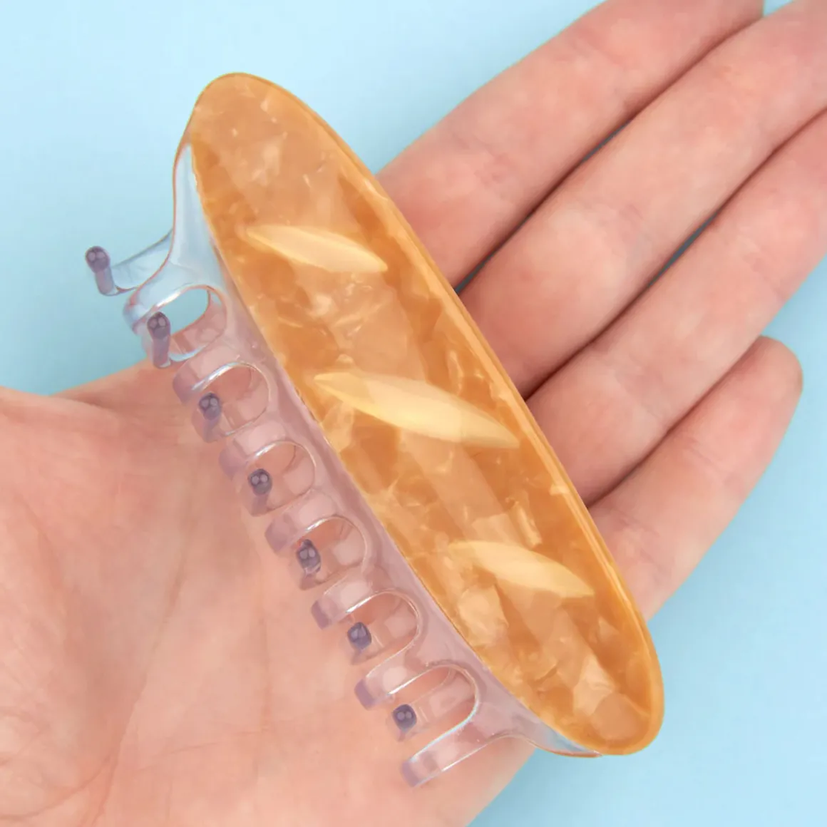 Cette belle Tradi, pas trop cuite mais juste assez croustillante, s’invite dans vos coiffures pour un look résolument « so French ». Parfaite pour agrémenter chignons et demi-queues, cette pince à cheveux originale ajoute une touche amusante et élégante à vos tenues tout en célébrant l’emblème de la boulangerie française.