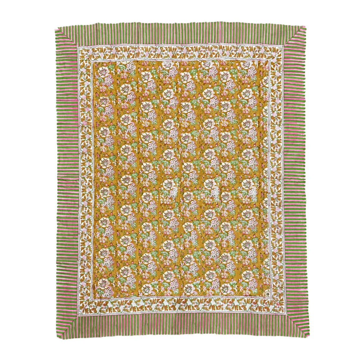 Ce plaid Marigold Simple ou Double est imprimé à la main avec des blocs de bois sculptés et s’adapte à différents usages. Déposez-le sur votre lit, sur votre canapé ou emmenez-le avec vous pour une journée à la plage ou lors d’un pique-nique avec son tote-bag assorti !