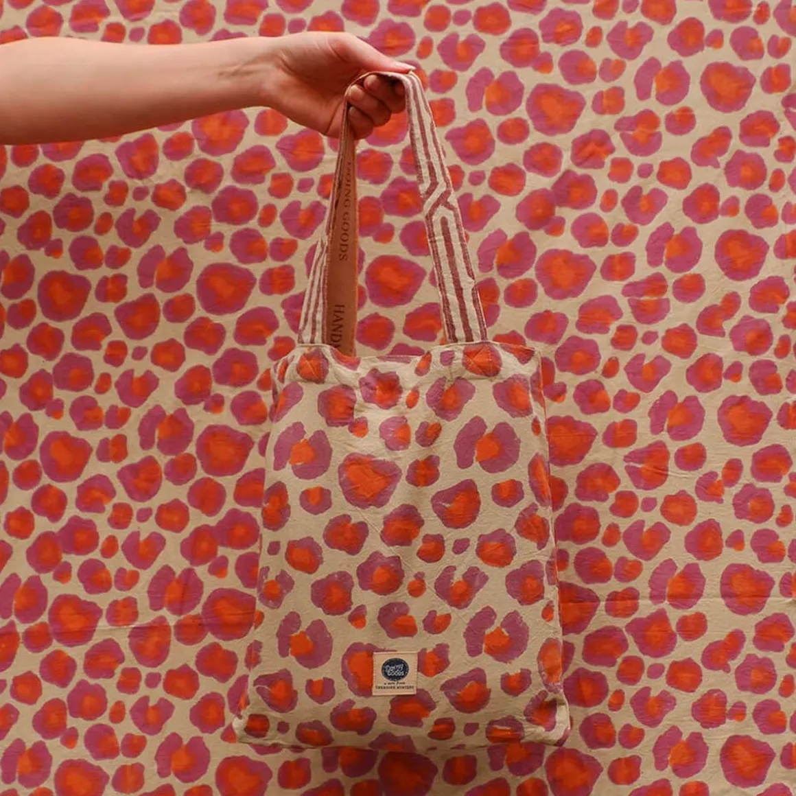 Ce plaid Tiger Simple ou Double est imprimé à la main avec des blocs de bois sculptés et s’adapte à différents usages. Déposez-le sur votre lit, sur votre canapé ou emmenez-le avec vous pour une journée à la plage ou lors d’un pique-nique avec son tote-bag assorti !