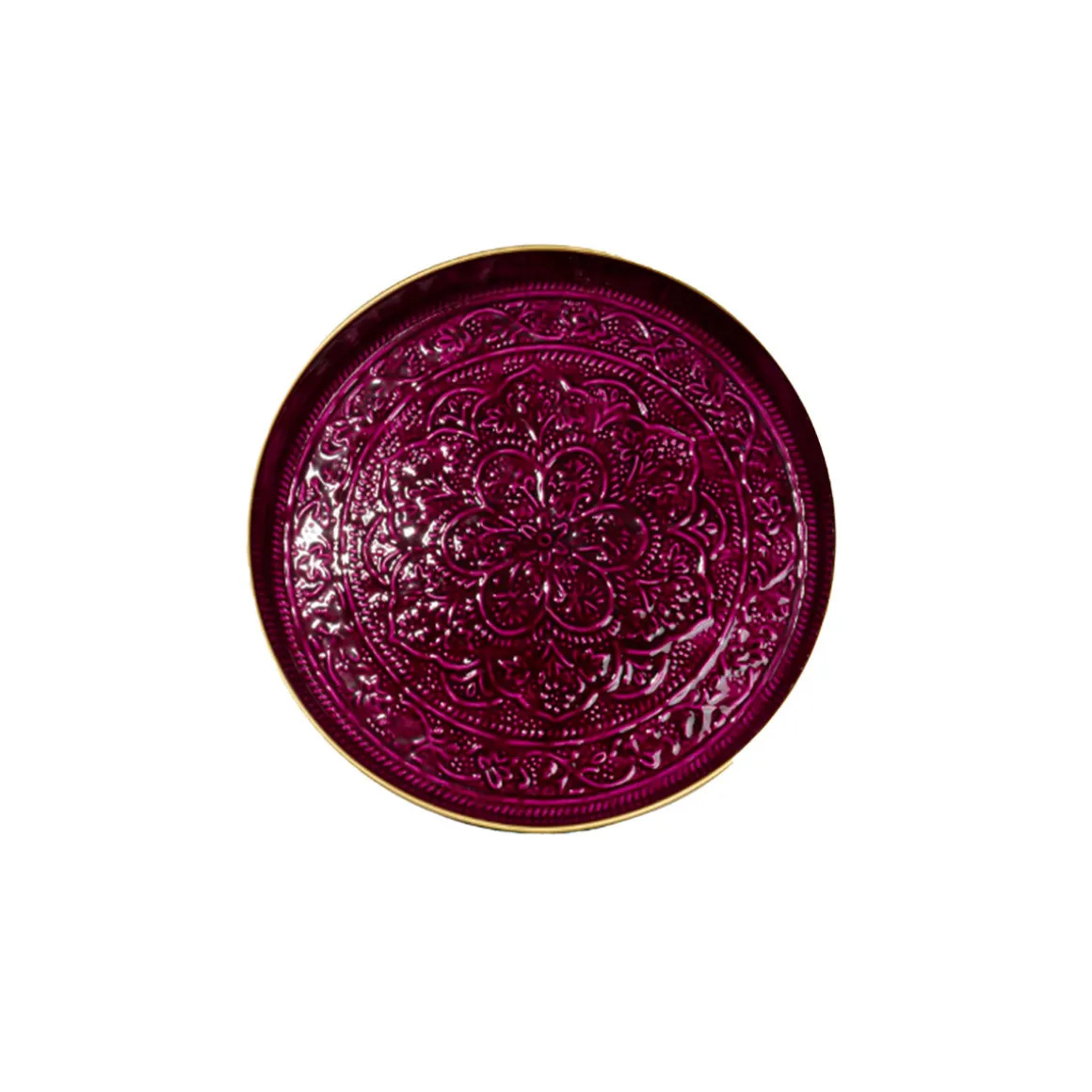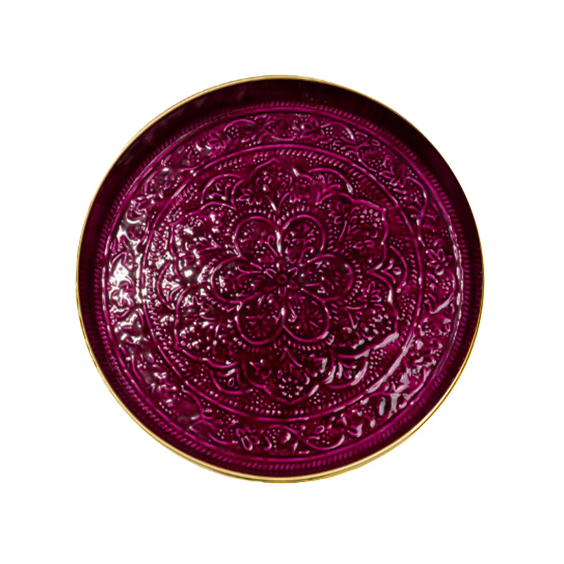 Révélant un délicat jeu de motifs et rosaces chic et bohème, ce plateau Berbère en métal émaillé en coloris Burgundy mise sur une couleur bordeaux profonde, qui viendra réveiller votre art de la table. Parfait pour accueillir de nombreux plats ou verres, il invite au partage et à la convivialité entre amis ou en famille. Disponible en plusieurs coloris et formats.