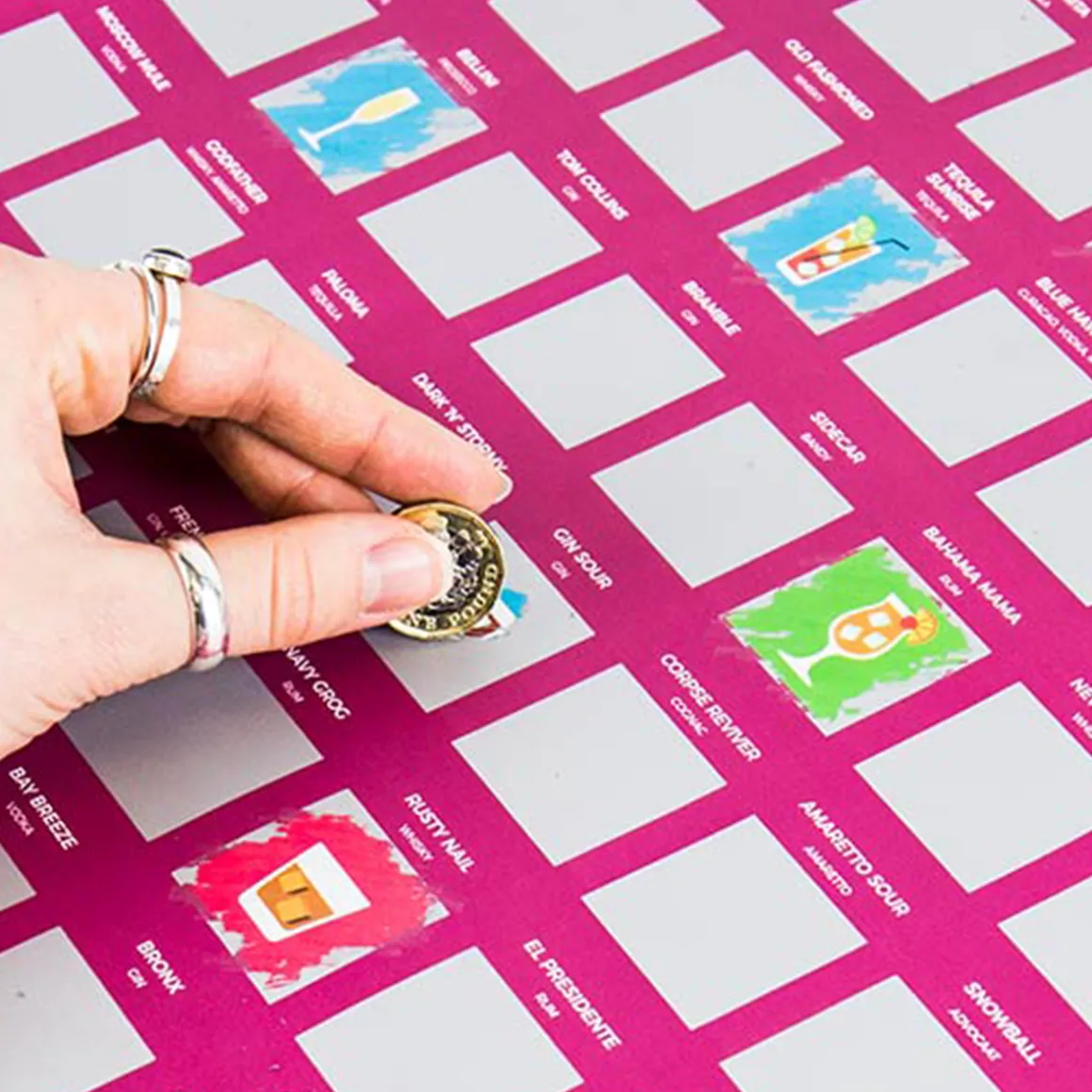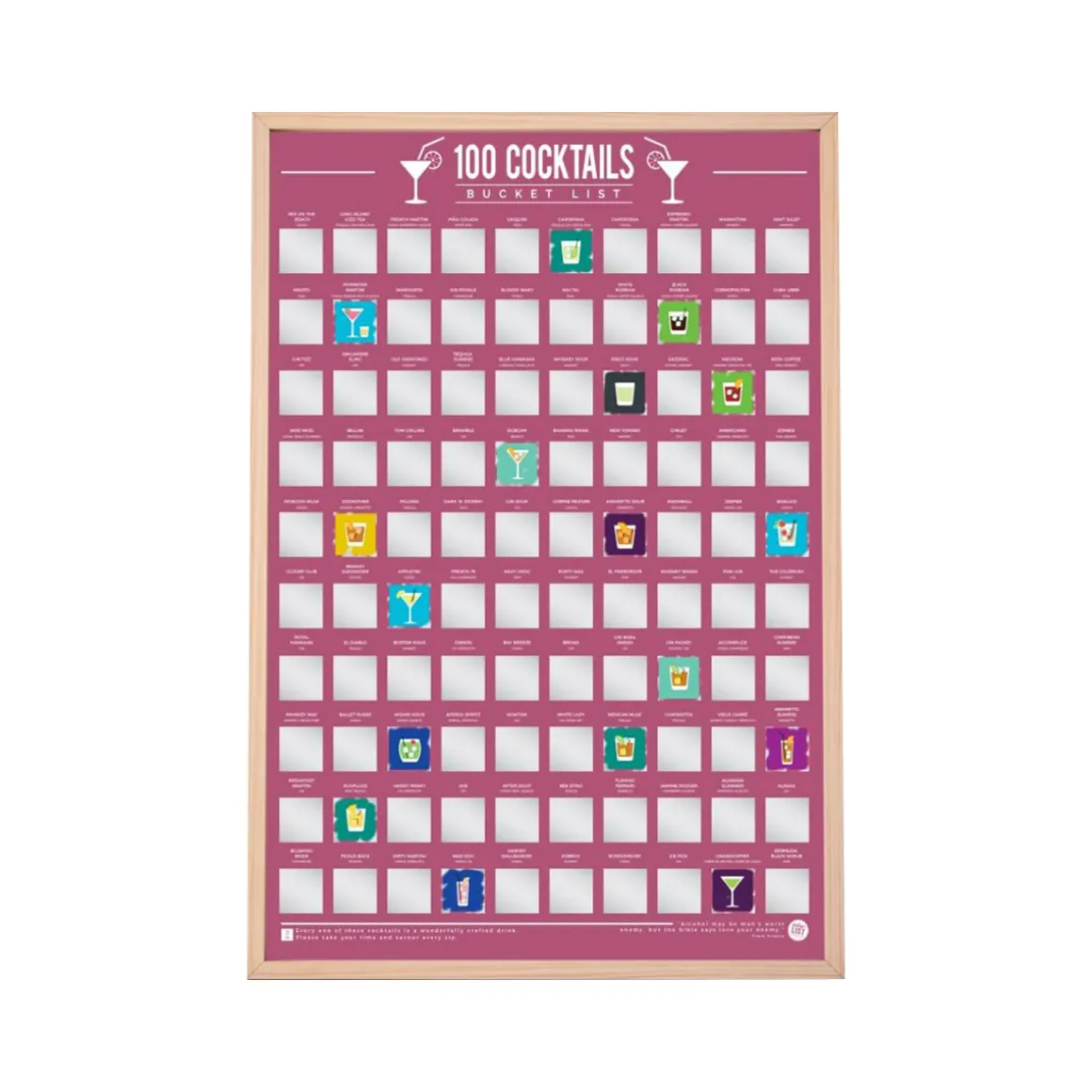 Cette affiche unique présente une sélection soigneusement choisie des 100 meilleures cocktails à déguster. Chaque bière est représentée par une case que vous pouvez gratter une fois dégustée, révélant ainsi une illustration spécifique à ce cocktail.
