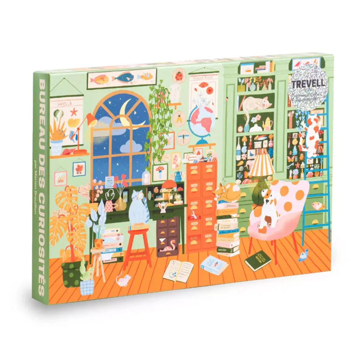 nLaissez ce puzzle vous accompagner pendant votre pause détente. Plongez dans ce bureau haut en couleurs et en découvertes, imaginé par Marion Brouillon. Composé de 1000 pièces, ce puzzle se fondra dans votre décor une fois assemblé.