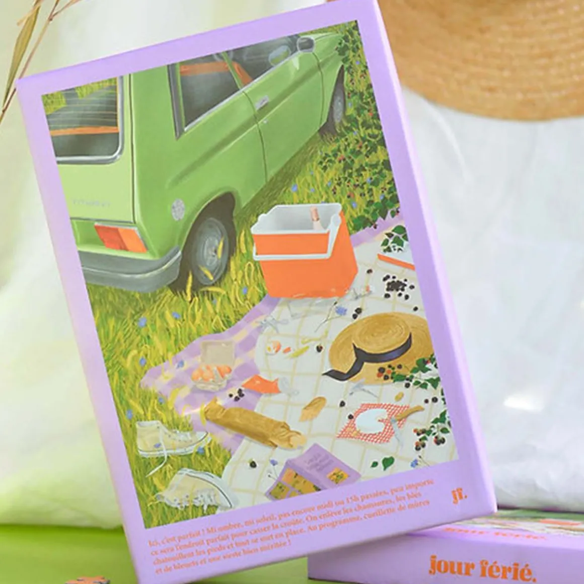 Qui dit départ en vacances, dit… glacière, chapeau de paille et pique-nique de qualité. Imaginé par Jour Férié, le puzzle Le casse-croûte contenant 100 pièces et réalisé de façon écoresponsable nous donne envie de partir en vadrouille et nous étendre le temps d’une pause sur une couverture… avant de repartir de plus belle !