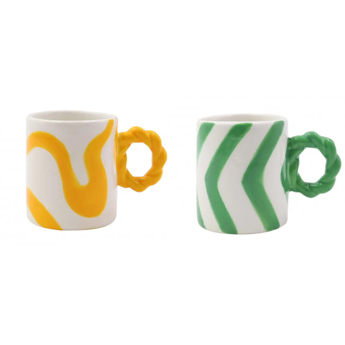 Découvrez notre set de 2 tasses Rosario jaune et vert ! Fort d’un imprimé design et moderne, ce set de tasses ajoutera une touche funky à votre vaisselle. De quoi profiter d’une pause café comme il se doit !