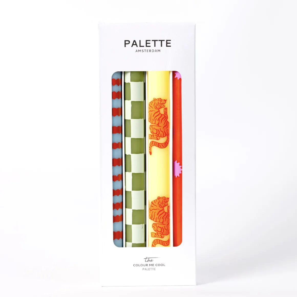 Découvrez notre set de 4 bougies Colour Me Cool ! Cet ensemble de quatre grandes bougies de dîner se décline en rouge, bleu, jaune et vert avec des imprimés design uniques. Pensé pour ceux qui aiment apporter une touche pop et fun à leur intérieur, il s’inspire des motifs funky et colorés. Chaque bougie arbore un motif distinct pour un effet dynamique. Un must-have aussi beau en boutique qu’à la maison !