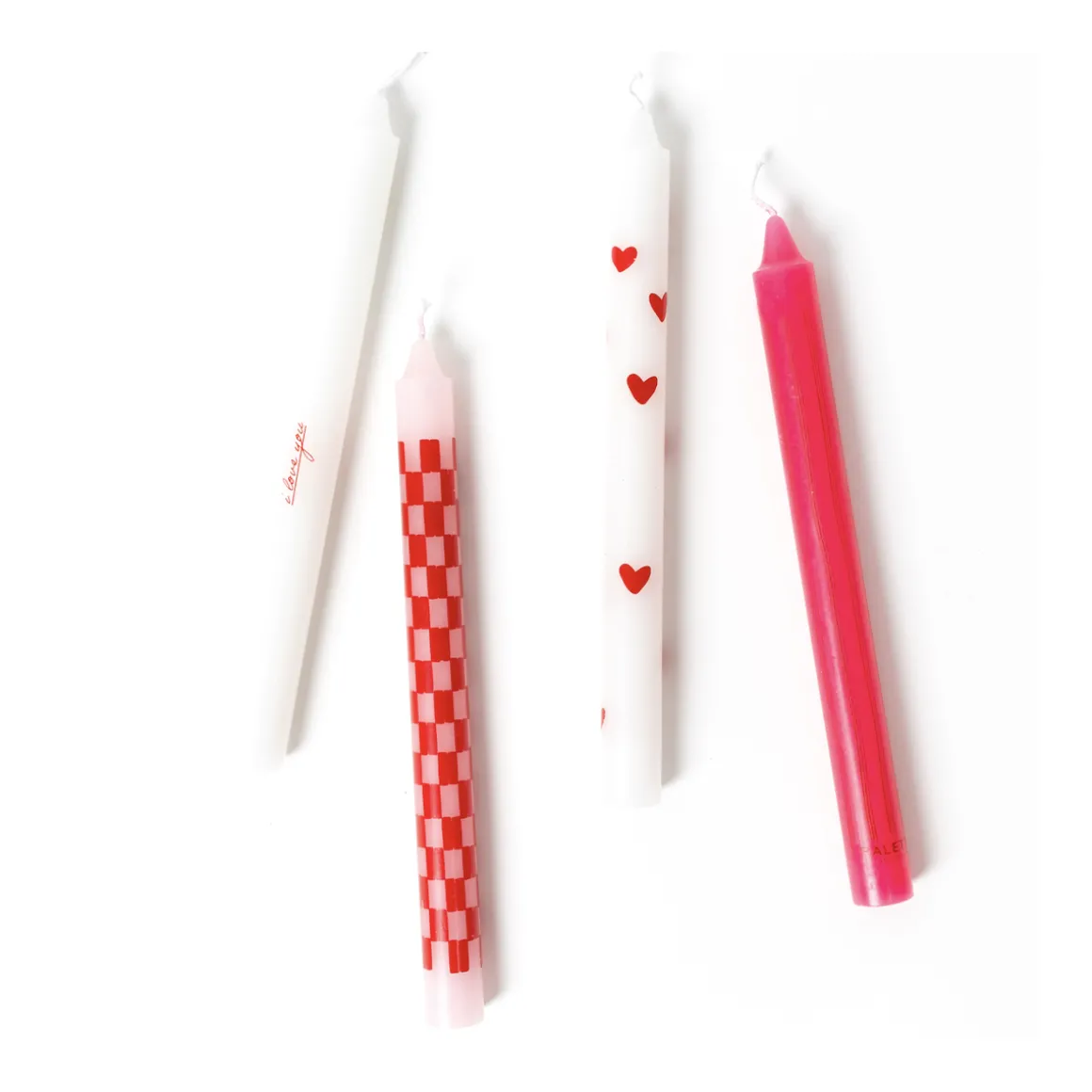 Découvrez notre set de 4 bougies Perfect Match ! Cet ensemble de quatre grandes bougies de dîner arbore des imprimés uniques dans des tons rose, rouge et blanc. Inspiré des années 70, il séduira les amateurs de style rétro avec ses motifs modernes. Chaque bougie présente un design distinct, créant un bel ensemble harmonieux. Parfait pour sublimer votre intérieur ou une vitrine en magasin !