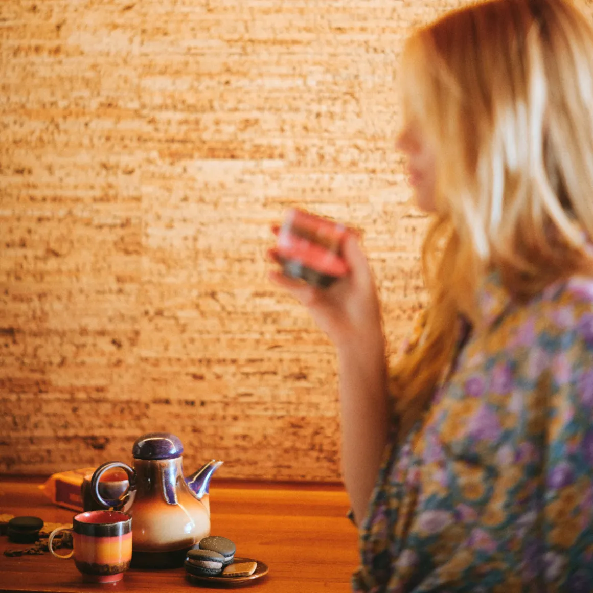 La palette riche et chaleureuse et les motifs groovy créent un festin visuel qui vous invite à savourer votre café dans un véritable style vintage.