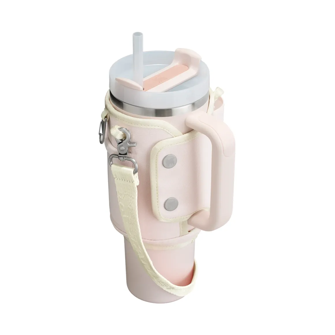 Découvrez l’hydratation mains libres grâce à la pochette All Day 1.2L Quencher Carry-All signée Stanley. Confectionné en polyester 100 % recyclé, ce compagnon pratique et coloré combine fonctionnalité et design. Sa sangle ornée d’un motif d’ours ailé s’ajuste facilement autour de votre gourde grâce à une double fermeture à bouton-pression. Portez-la en bandoulière, emportez vos essentiels et profitez de vos journées. Avec trois poches bien pensées, rangez votre téléphone, portefeuille, lunettes de soleil et petits accessoires comme un baume à lèvres ou des écouteurs. Un clip intégré garde vos clés à portée de main. Changez de style en échangeant les sangles avec vos amis. Où que vous soyez, bougez librement et restez hydraté avec Stanley !