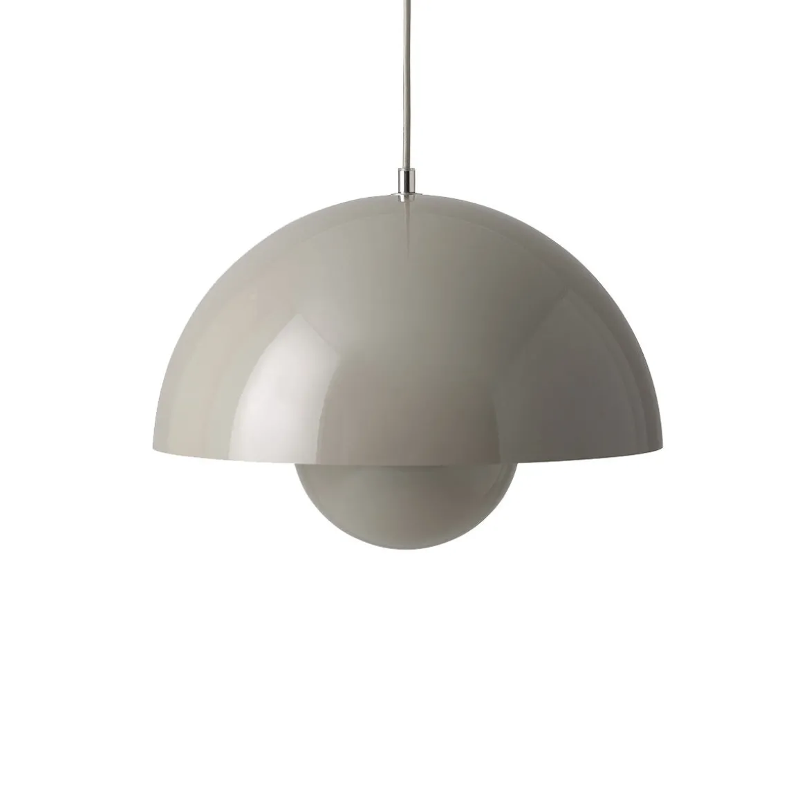 La suspension Flowerpot de Verner Panton est rééditée chez And Tradition avec un coloris gris beige.