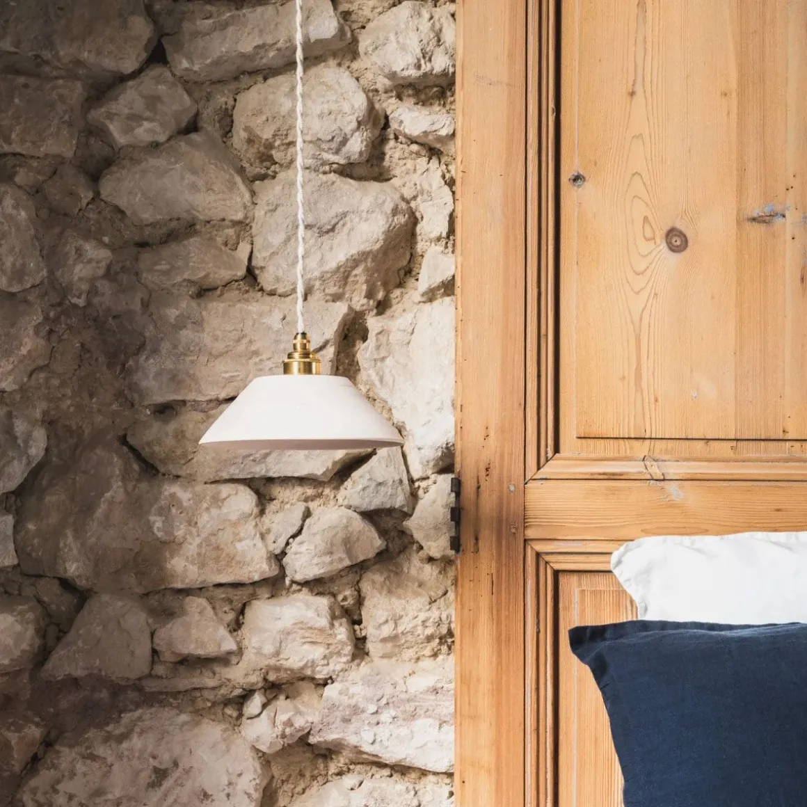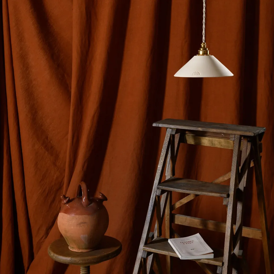 Utilisée comme liseuse de chaque côté du lit ou dans une salle de bain, la suspension peut être associée aux modèles Ursule et Lisette en terre mêlée pour créer une grappe lumineuse unique.