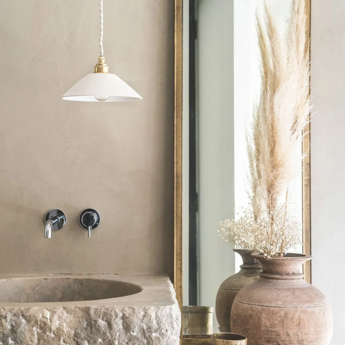 La Suspension Lisette en Terre Cuite Blanche est une véritable pièce d’artisanat, tournée patiemment par des mains expertes.