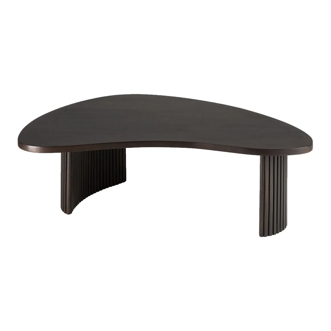 Avec son plateau ludique en forme de galet disposé sur une élégante base plissée, la table basse Boomerang de chez Ethnicraft apporte une touche esthétique parfaitement proportionnée pour tous les espaces.