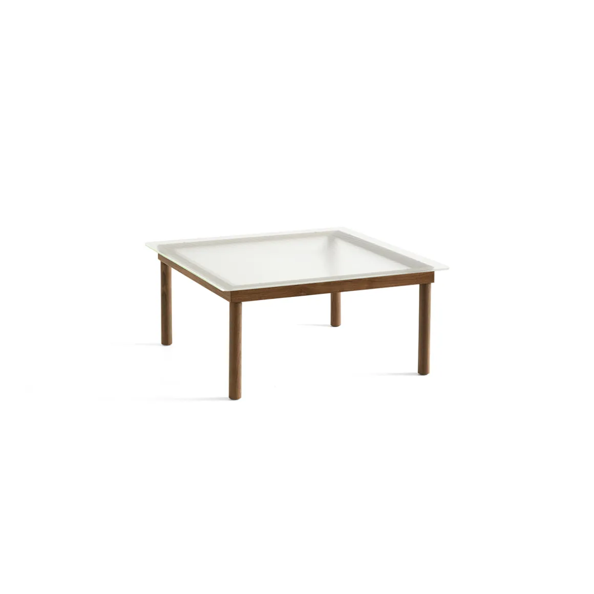 Une silhouette minimale pour cette table basse Kofi Noyer Massif et Verre Roseau Transparent de HAY… n