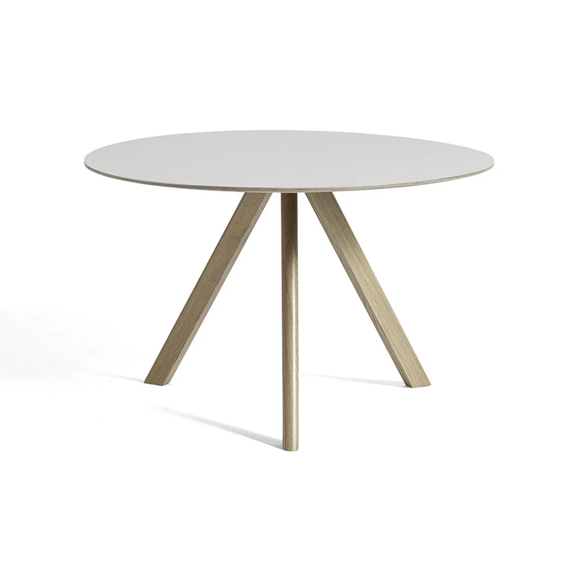 Partageant les mêmes pieds angulaires caractéristiques que le reste de la gamme Copenhague des frères Bouroullec, la table CPH 20 de HAY se dote d’un plateau rond qui adoucit sa structure. Convenant aux petits espaces comme délivrant une expression intime, cette table crème a la capacité de se fondre au sein de votre intérieur. Réalisée en chêne et plateau en linoléum, elle offre une esthétique intemporelle. Fabriqué au Danemark.