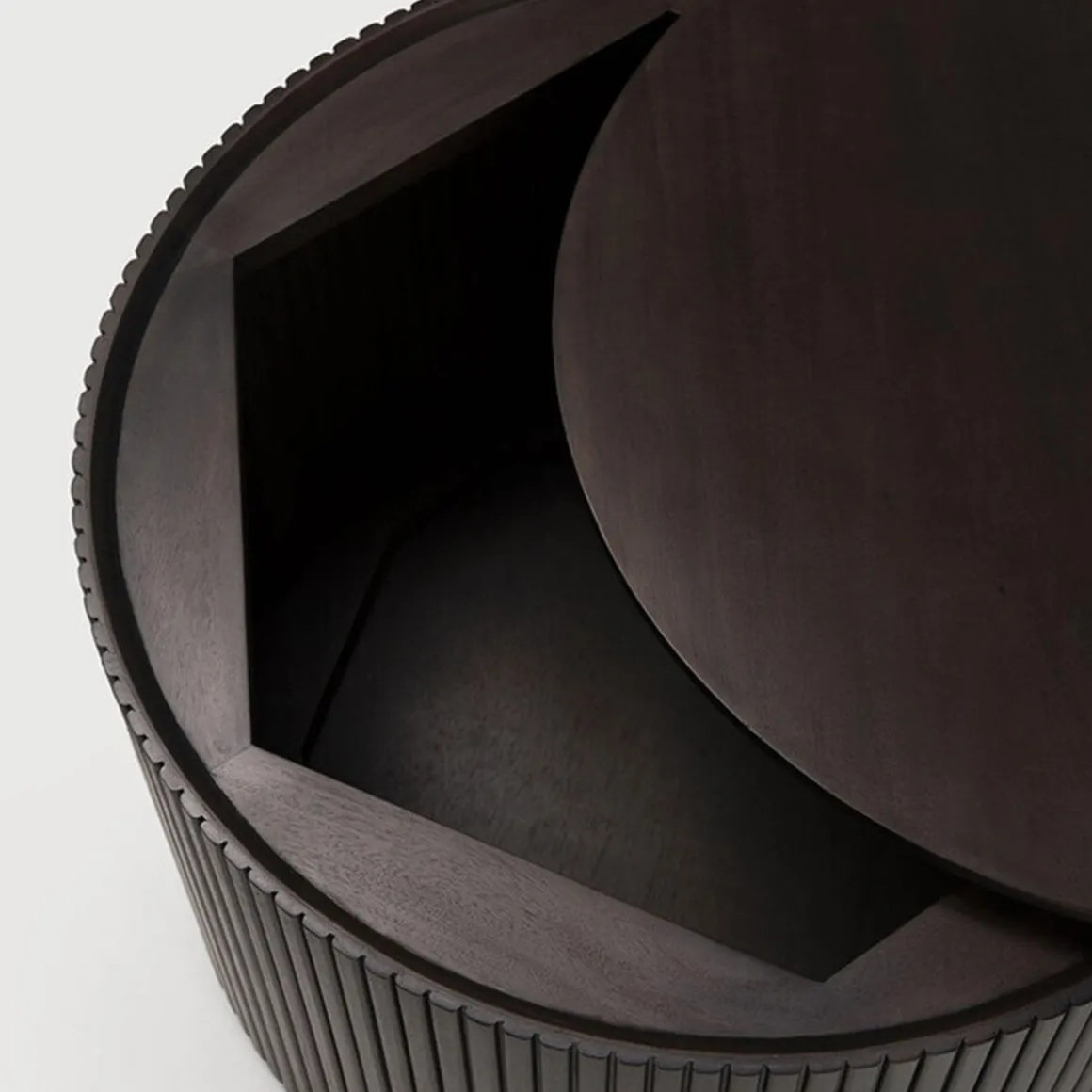 Créée par Jacques Deneef, la table d’appoint ronde Roller Max de chez Ethnicraft est multifonctionelle. Elle réunit une table avec un rangement. Le plateau, qui se trouvant sur la surface de la table est facilement amovible pour vous permettre de dissimuler des jouets, coussins ou plaids du quotidien. Une solution idéale pour les petits espaces.