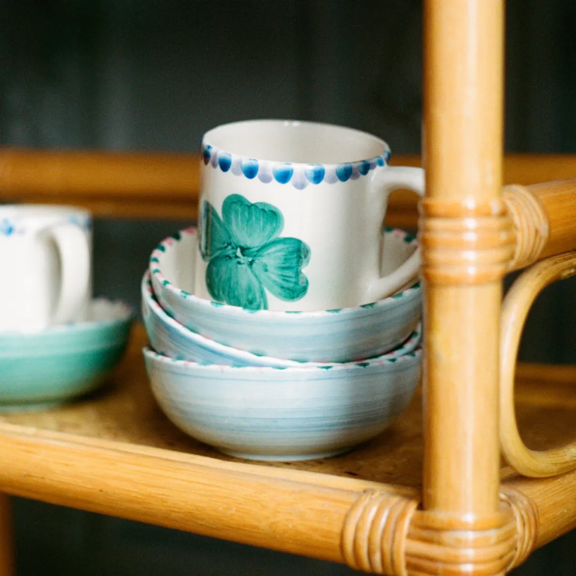 Apportez une touche de chance et d’élégance à vos moments de détente avec notre tasse à trèfle peint à la main de Rice. Chaque tasse est une œuvre d’art unique, soigneusement réalisée par des artisans talentueux. Idéale pour savourer votre café, thé ou toute autre boisson, cette tasse ajoute une note de raffinement et de charme à votre quotidien.