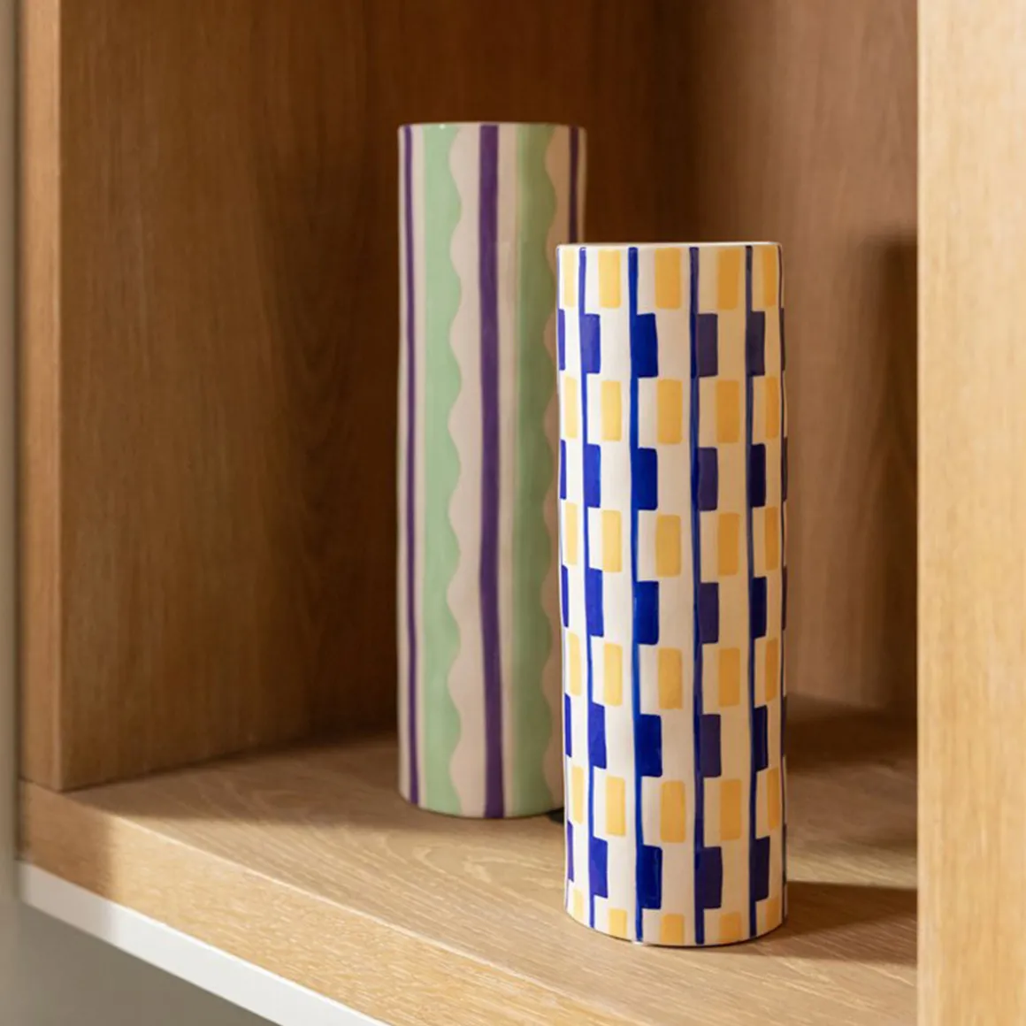Le vase coloré clash wiggle est conçu pour donner du style à toute table. Le motif, peint à la main, est de forme irrégulière, ce qui habille le vase de manière unique. Un vase plein de singularité et d’élégance pour les fleurs, les branches ou pour ranger les ustensiles de cuisine.
