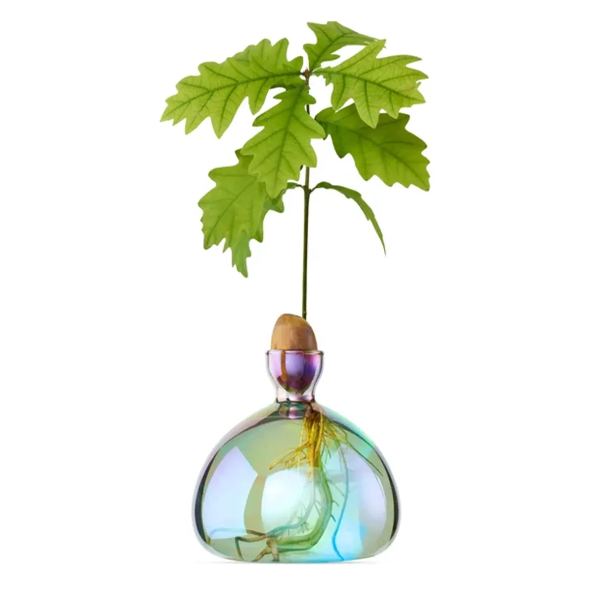 Idéal pour les amoureux des arbres comme les amateurs de design, ce vase pour gland, basé sur les principes du minimalisme, de l’intemporalité et de la fonctionnalité, vous permet de voir un simple gland que vous avez cueilli devenir un magnifique chêne. Sa forme sinueuse magnifie les racines tandis qu’elles prospèrent, créant un point focal parfait pour assister à la croissance de la plante. Fabriqué au Pays-Bas.
