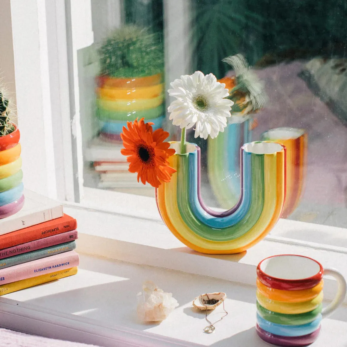 Un rayon de soleil avec ce vase en céramique aux allures d’arc-en-ciel ! Sa double entrée permet d’y disposer deux mini bouquets pour un maxi effet.