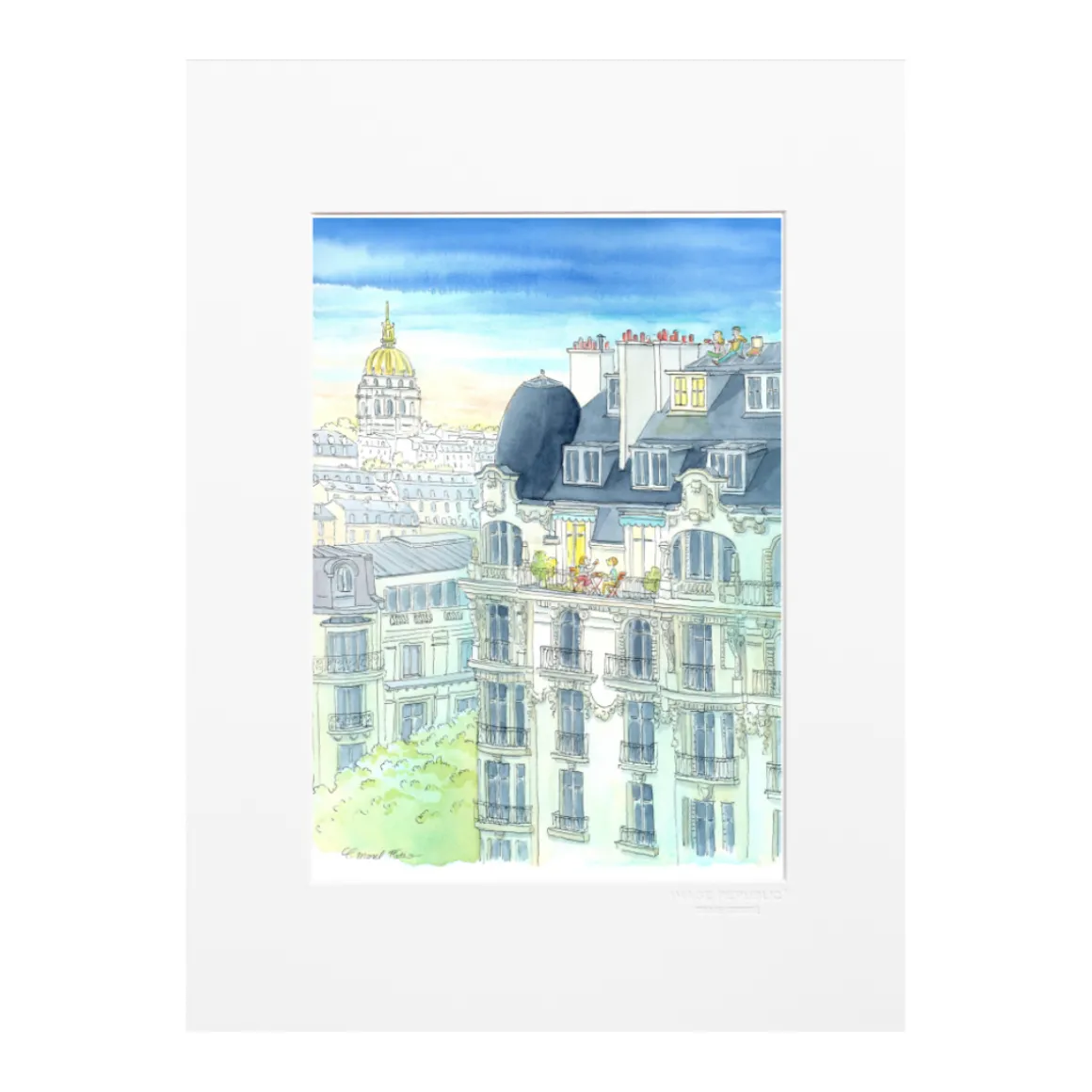 Réalisée à l’aquarelle et en techniques traditionnelles, cette affiche met en valeur la légèreté du trait de l’artiste, ainsi que les nuances vibrantes des pigments. Chaque coup de pinceau reflète l’affection de Claire Morel Fatio pour Paris, une ville qu’elle sublime à travers son regard d’artiste, révélant des détails cachés ou des moments fugaces que seuls les plus attentifs perçoivent.