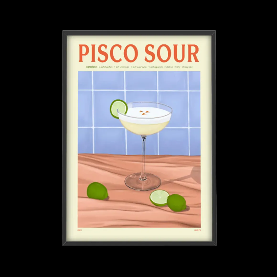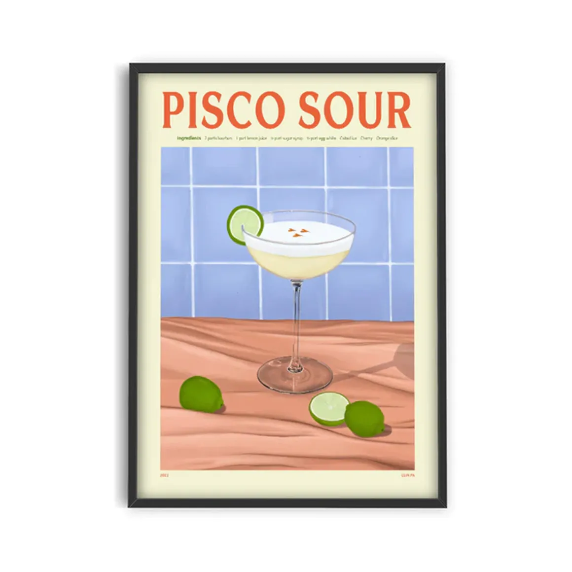 Une affiche rafraîchissante aux allures rétro vintage ! Aux tons bleus, cette Affiche Pisco Sour créée par l’artiste et illustratrice suédoise Elin Palmaer Karlsson en collaboration avec PSTR Studio est prête à être encadrée sur vos murs. Pour décorer un bar ou une cuisine, cette affiche est idéale comme cadeau pour les amateurs de cocktails. Vendue sans cadre.