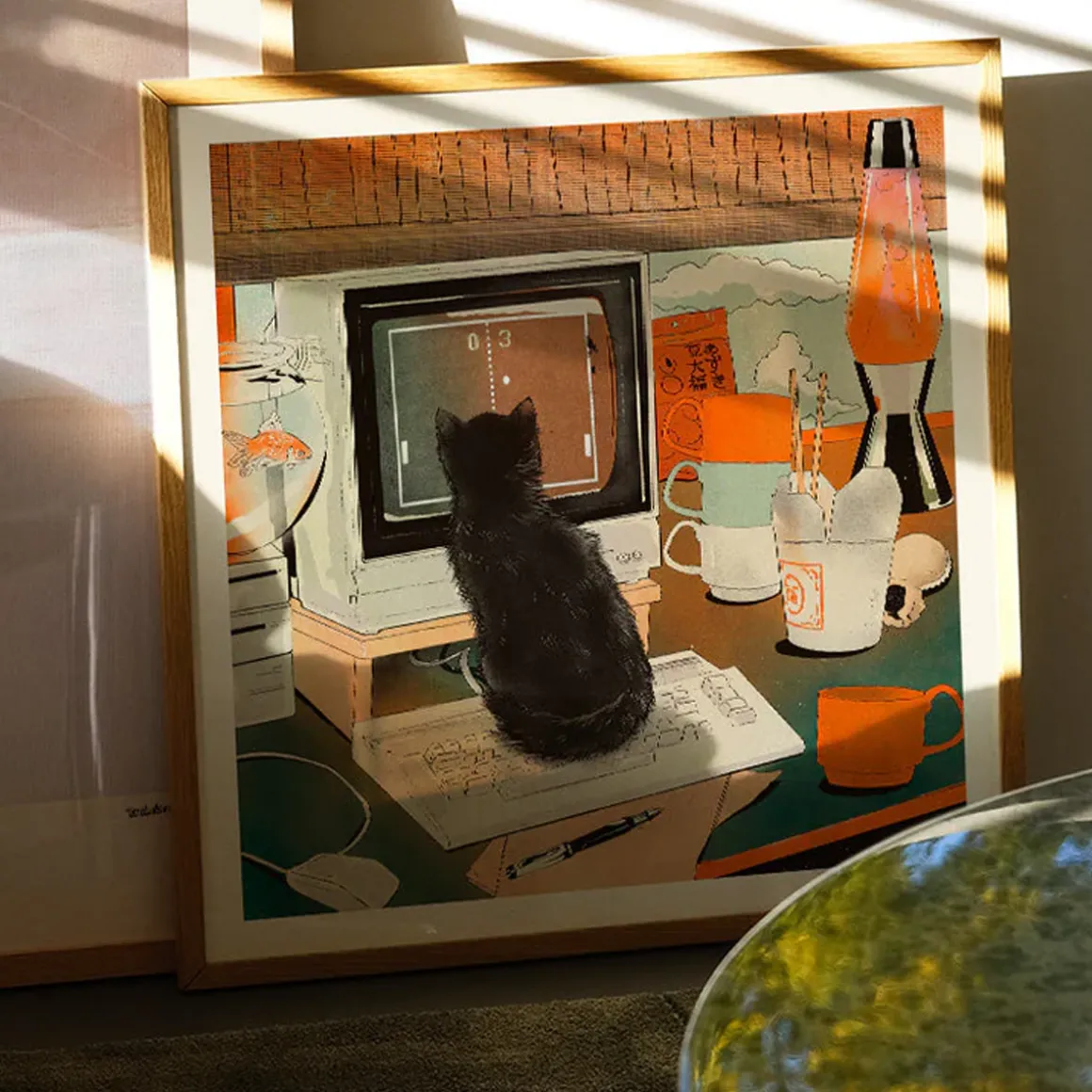 Une immersion au restaurant ! Forte de couleurs vibrantes, cette affiche Bodega Cat Kimchi illustrée par Enikő Eged ouvre l’appétit. Prête à être encadrée, elle complètera parfaitement votre décoration murale.