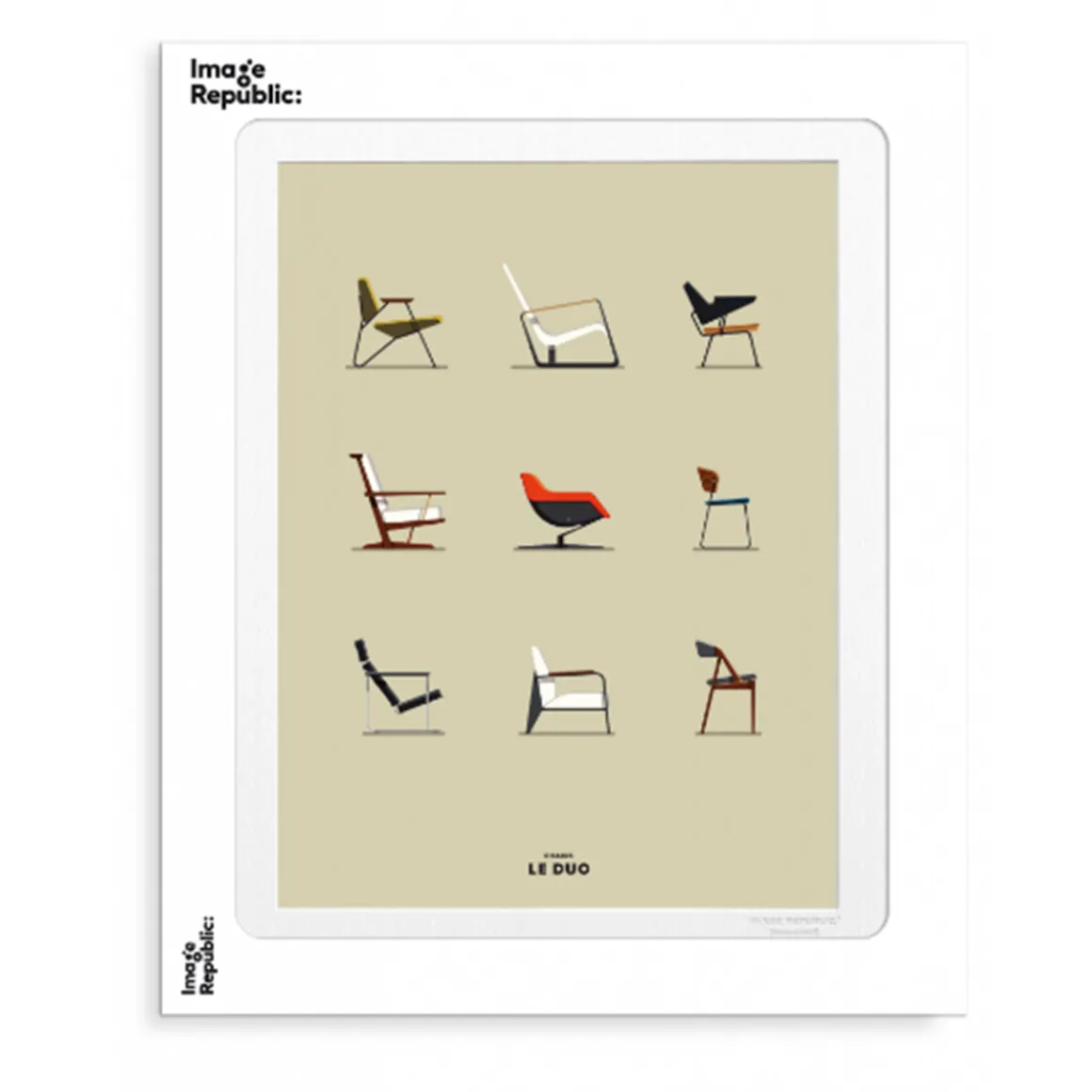 Illustrant des chaises iconiques des années 70 et 80, ce poster créé par le studio parisien Le Duo, à la fois moderne et coloré, ornera votre mur de la plus belle manière. Image Republic, l’éditeur, a choisi pour cette affiche un papier et une impression de qualité. Fun et pleines de références à des objets à la fois intemporels et cultes, ces affiches Le Duo aux couleurs pop viendront égayer votre intérieur ! Fabriquée en France. Disponible en plusieurs modèles.