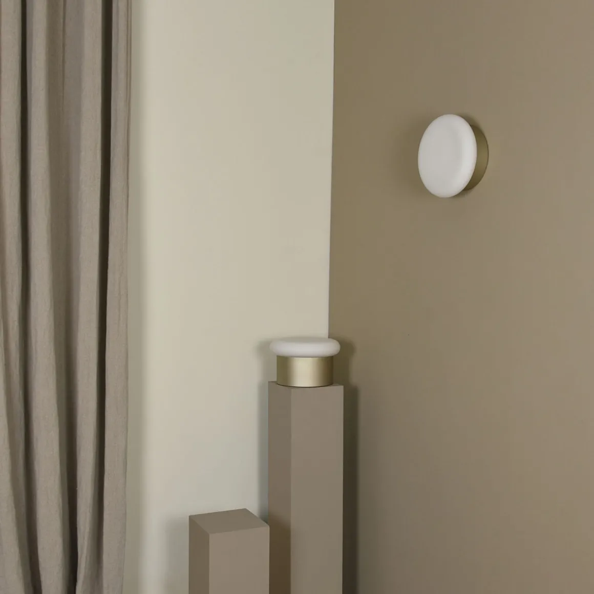 Déclinée en applique et lampe à poser, Colonna signée ENOstudio est une collection de deux lampes basées sur le retour de deux objets distincts : la colonne, avec son rôle historique dans la maison et le Totem Ceramics produit dans les années 50. Offrant une expression raffinée et graphique, ce luminaire aux lignes minimales cerclées d’un anneau d’acier laitonné saura réchauffer votre intérieur.