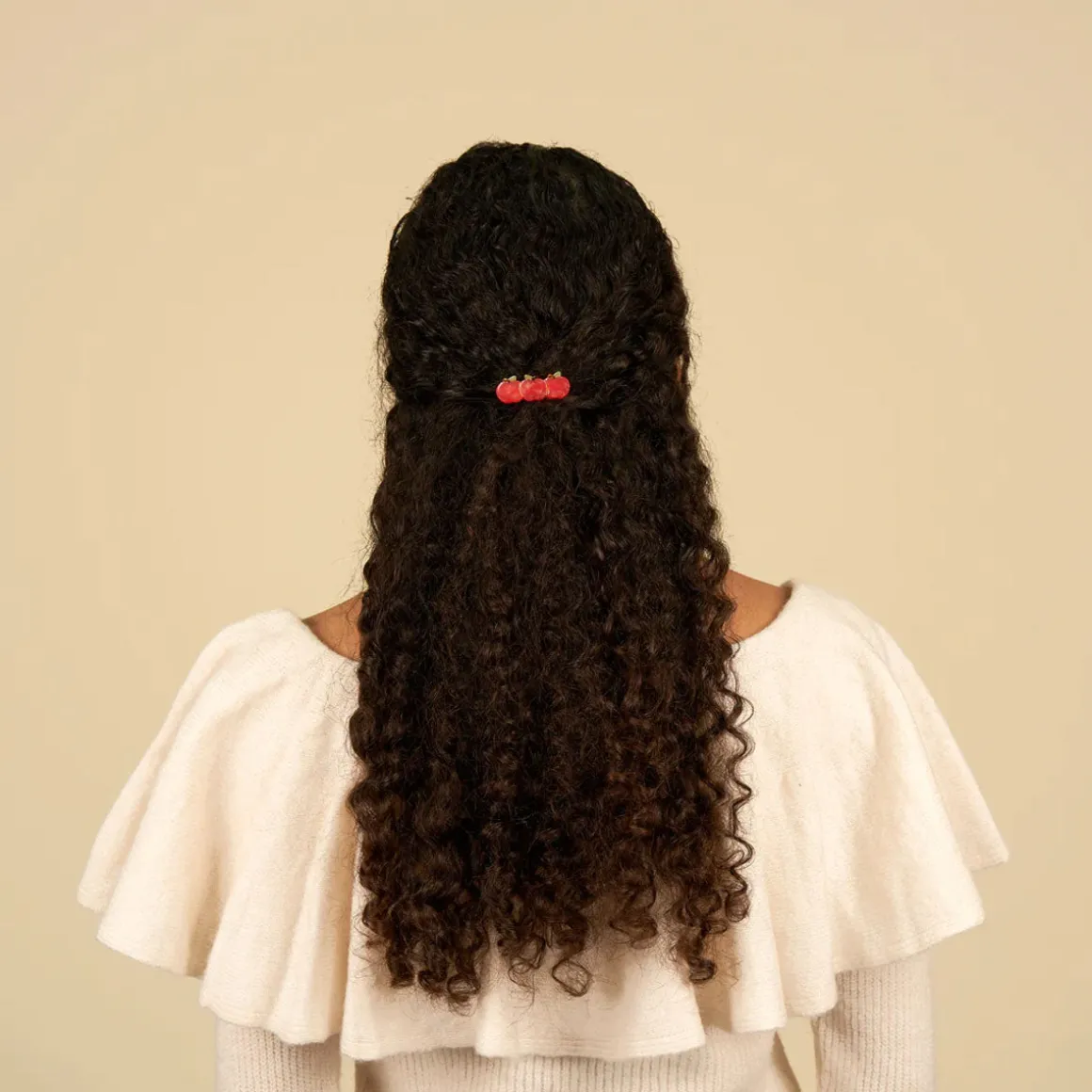 Avec son design de fruit rouge tout juste cueilli, elle apporte une touche gourmande et pétillante à toutes les coiffures, qu’elles soient sur cheveux longs ou courts.