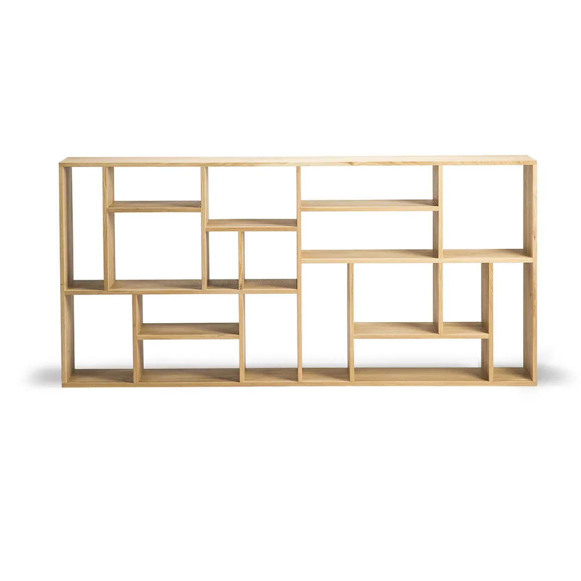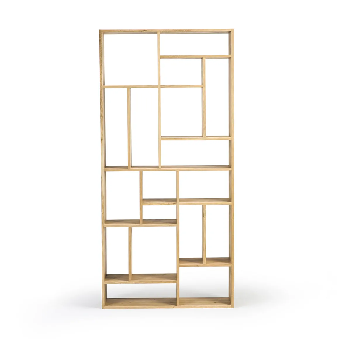 L’étagère en chêne M d’inspiration Mondrian est basée sur la célèbre grille de lignes verticales et horizontales du peintre néerlandais. Elle viendra structurer votre blibliothèque ou séjour tout en apportant une solution visuelle et fonctionnelle de rangement.
