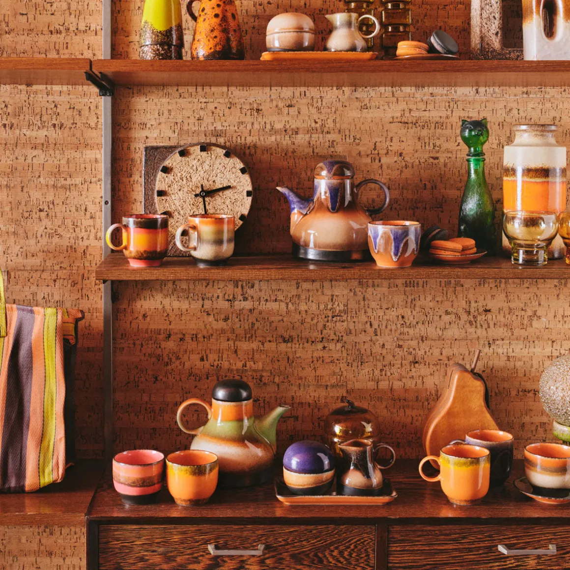Avec sa silhouette unique, elle deviendra un sujet de conversation, parfaits pour les moments de détente et les pauses café à la maison. La collection Coffee en céramique des années 70 est polyvalente, élégante et passe au lave-vaisselle, alliant praticité et charme d’antan.