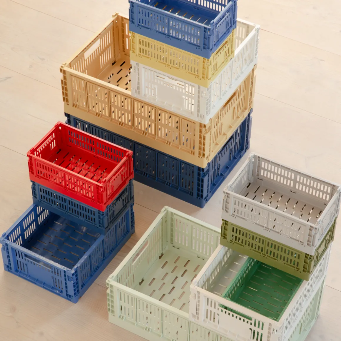 Pliable et empilable, les caisses s’utilisent pour ranger aussi bien des fruits, des légumes que de la papeterie ou des jouets ! Mélangez les tailles et les couleurs et empilez différentes caisses Crate pour un rangement à l’esprit totalement décalé ! Disponible en plusieurs modèles.