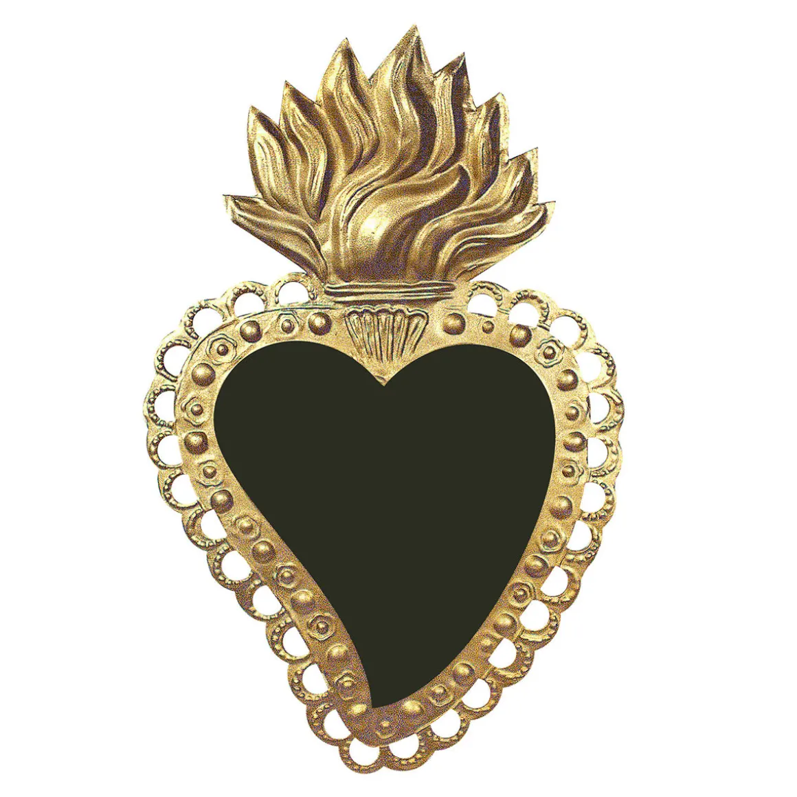 Pour se regarder avec bienveillance et flatter ses murs, cette collection de miroirs aux inspirations exvotos rayonnera chez vous ! Chaque pièce est faite de fer blanc embossé, patiné à la main, ce qui lui donne cette jolie couleur et son coté ancien. Cet objet est l’oeuvre d’un artisan, ainsi chaque coeur est unique par le grain et la patine. À accrocher aux murs à chaque recoin ! Disponible en plusieurs modèles.