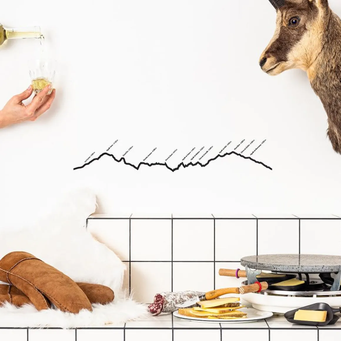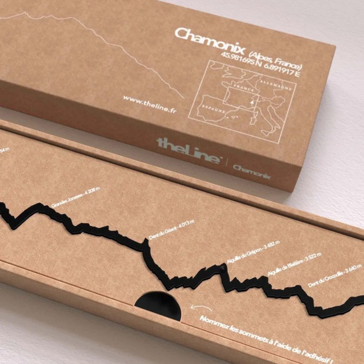 Baladez-vous dans vos stations favorites avec la collection montagne de The Line fabriquée en France ! Découvrez la silhouette de Chamonix depuis le Nord. On y voit l’Aiguille du Midi, la Dent du Géant, le Dôme du Goûter et le Mont Blanc. Par cette collection de décorations murales qui renouvelle la frise décorative avec un esprit minimaliste, c’est l’horizon des grandes villes ou destinations montagneuses qui est simplifié sous la forme d’une ligne noire et défile sous vos yeux… Disponible en plusieurs modèles.