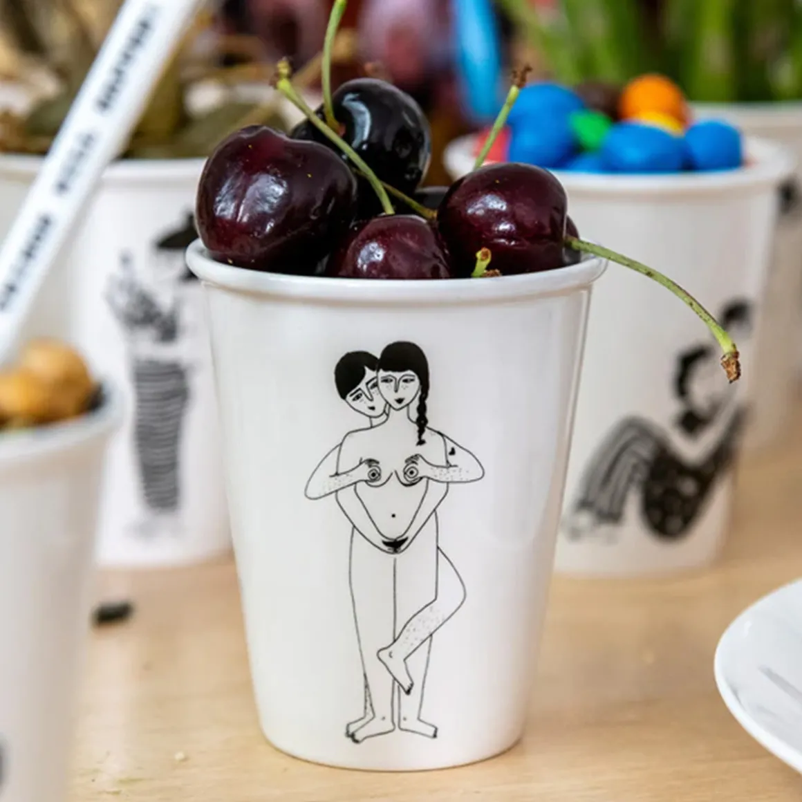 Découvrez le gobelet Faces Everywhere en porcelaine par Helen B ! Pleine d’humour et de malice, cette collection de la table et lifestyle imaginée par la maison belge Helen B en fera sourire plus d’un. Motifs dénudés, burlesques ou hipsters… Ces délicats accessoires font la part belle aux illustrations grâce un parti-pris noir et blanc résolument contemporain et offrent en un coup de crayon, une aura décalée-chic à votre décoration. De quoi pimenter votre quotidien grâce cette collection pleine de légèreté ! Fabriqué en Belgique.